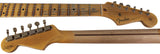 1958 was the final year of the original one-piece maple neck before Leo Fender switched to a glued-on “slab” rosewood fingerboard, which significantly changed the look and tone of Fender instruments. Many players swear by the one-piece maple for its tone and stability, which is what makes 1958 such a sought-after year for the Strat. The ’58 Strat Relic is a nod to that year in all its glory, with several custom mods. A two-piece select alder body (ash on natural blonde finish model) wears a Relic lacquer finish, while the resonant one-piece quartersawn maple neck has a comfortable 1954-style “soft V” profile, 9.5 fingerboard radius and 21 narrow tall (6105) frets.