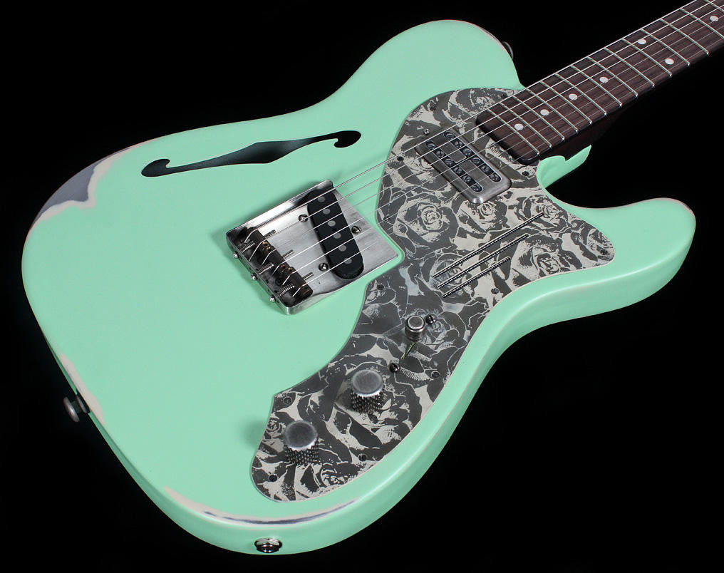 Paint Option:   Cream Rose Engraved Pickguard w/ Surf Green Headstock