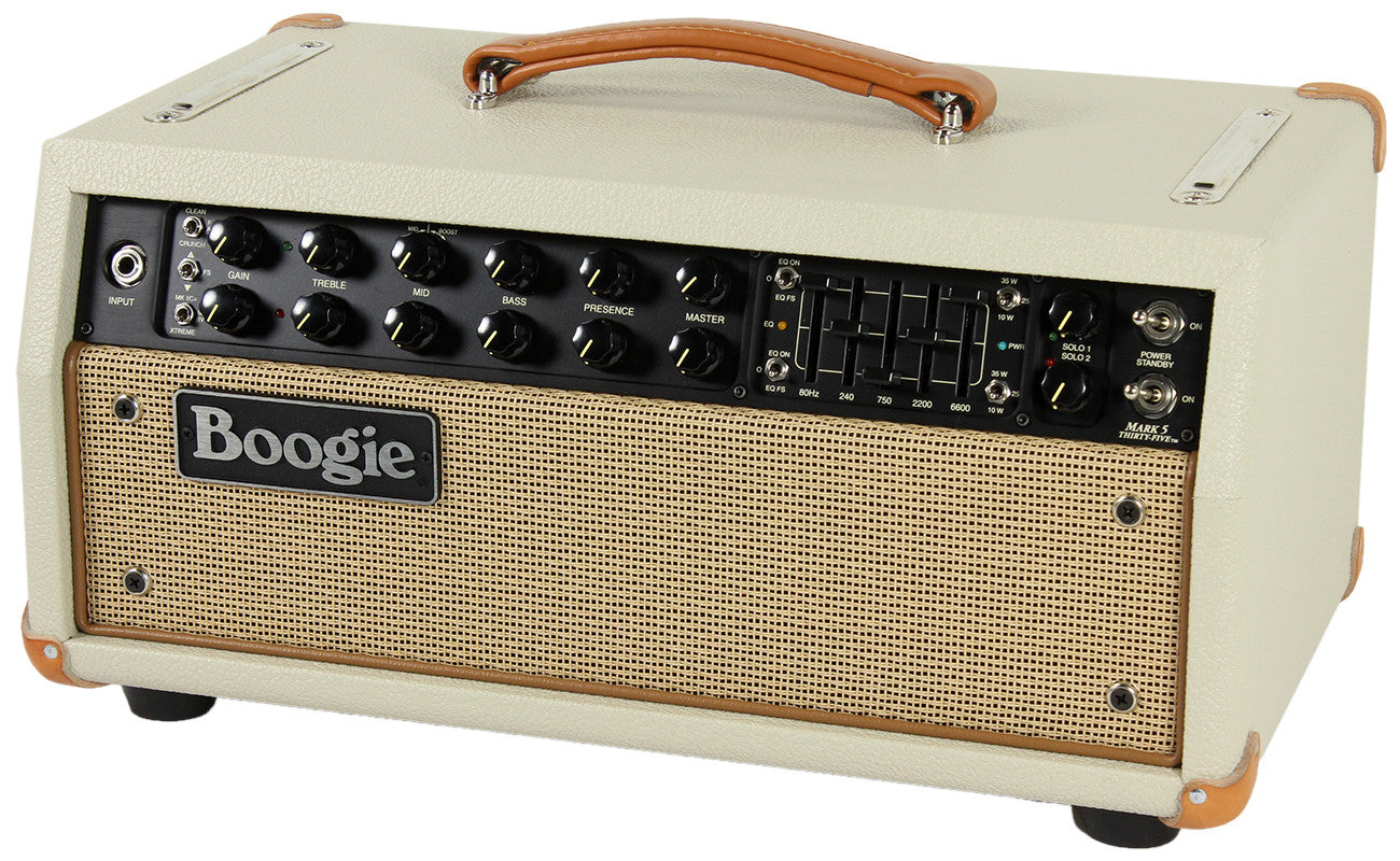 The Mesa Mark V 35 is available as both a head and a combo. It features everything that has made the Mark V 25 so successful over the last year while incorporating new and updated features like an all tube, long spring reverb tank, Independent SOLO control, more power options (10/25/35 watts per channel) and full set of cabinet voices built into to the on board CabClone.