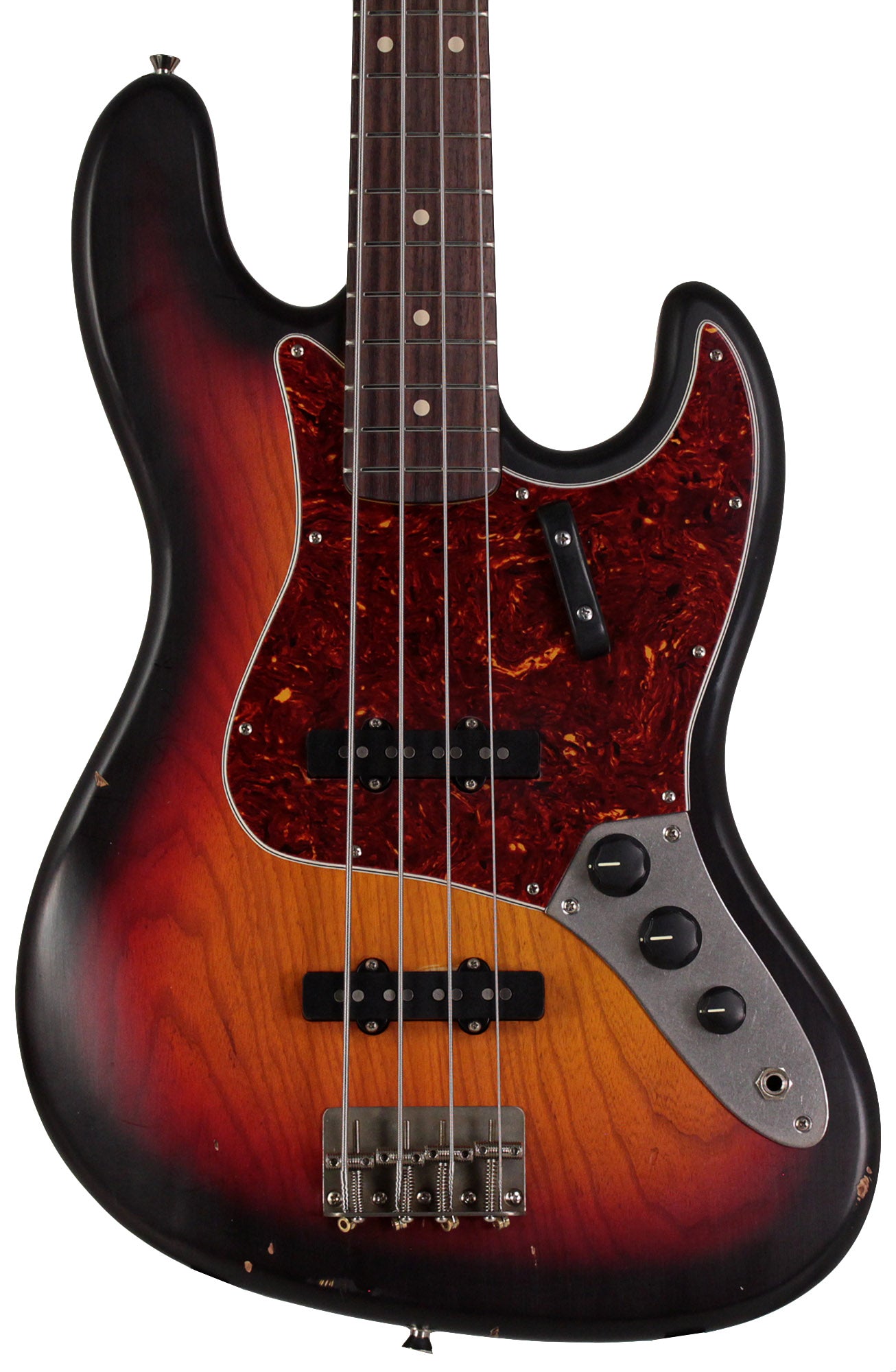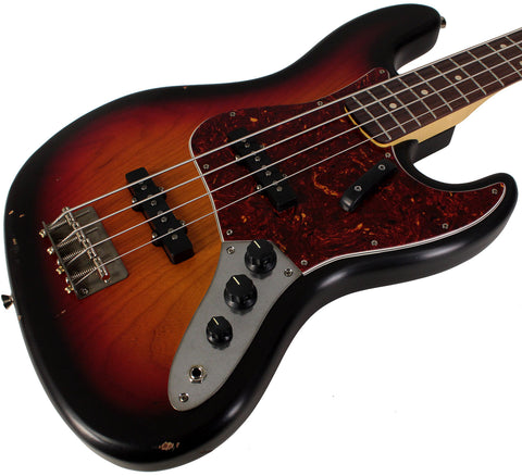 Nash JB63 Bass Guitar, 3-Tone Sunburst, Tortoise Shell, Light Aging