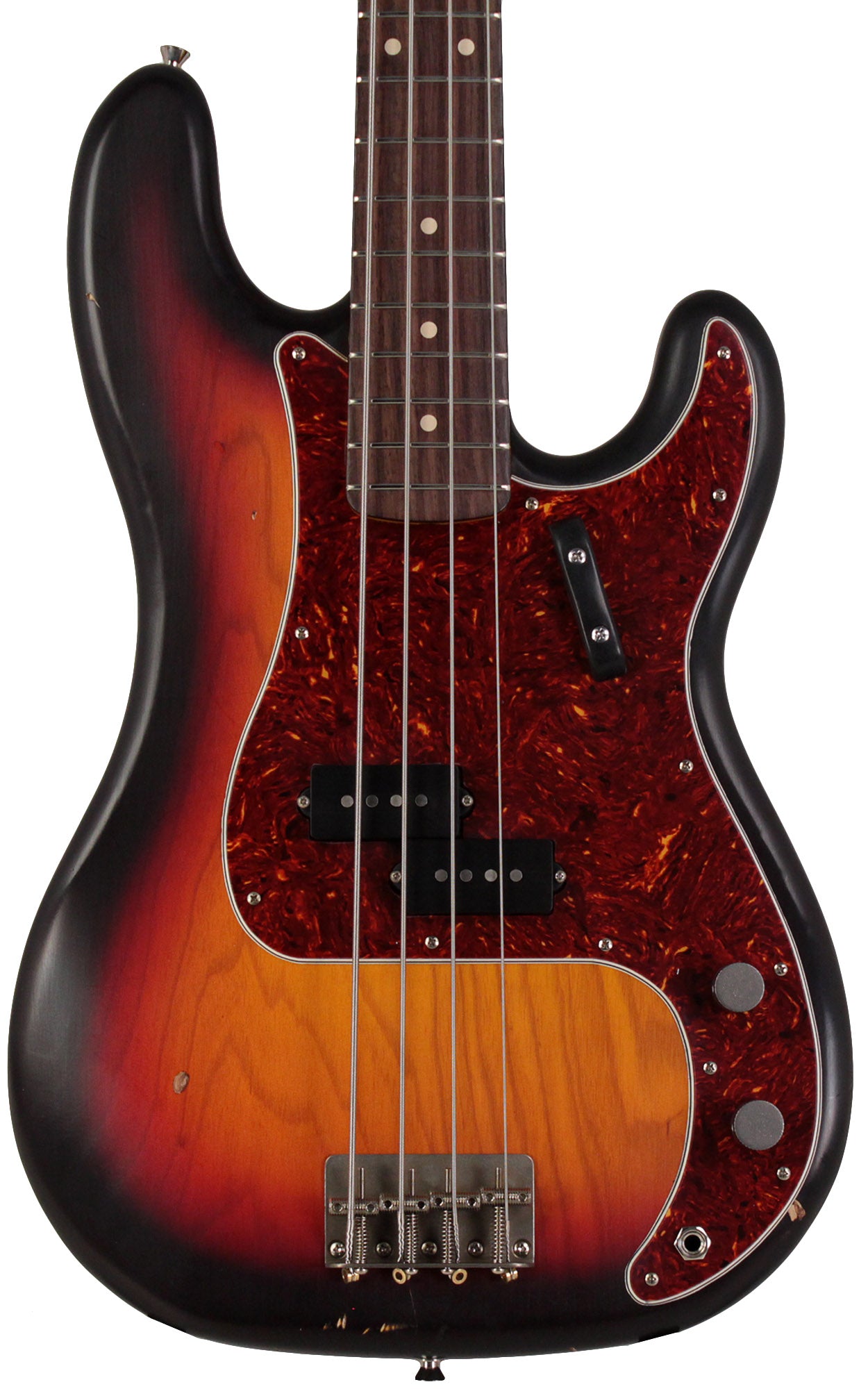 Nash PB63 Bass Guitar, 3-Tone Sunburst, Tortoise Shell, Light Aging