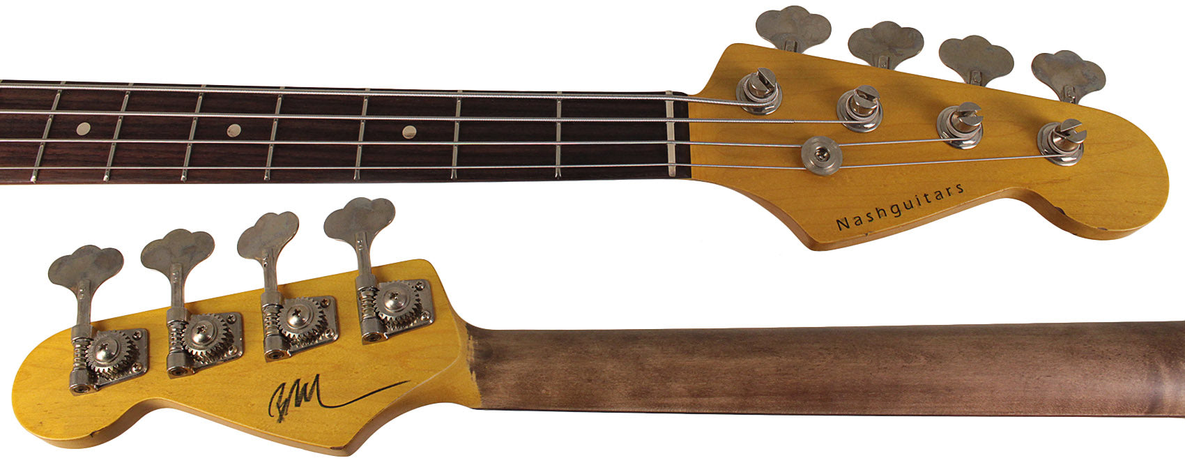 If anyone knows about building vintage guitars, it's Bill Nash! He has worked with a HUGE number of them for many years and has a great deal of knowledge about how a vintage guitar looks and feels. The aged control knobs, pickguards, dinged and scratched finish, and aged hardware make the bass look old, but the modern techniques used to make the guitar ensure that it plays like a brand new instrument. Each Nash PB63 is built by hand, so each one is completely unique. It features a Maple Neck, an ash body, and a Jason Lollar hand-wound pickup. The bridge is a high quality aged traditional bridge with adjustable steel saddles made from top shelf materials, and the entire bass is given a level of wear and tear via an aging process.