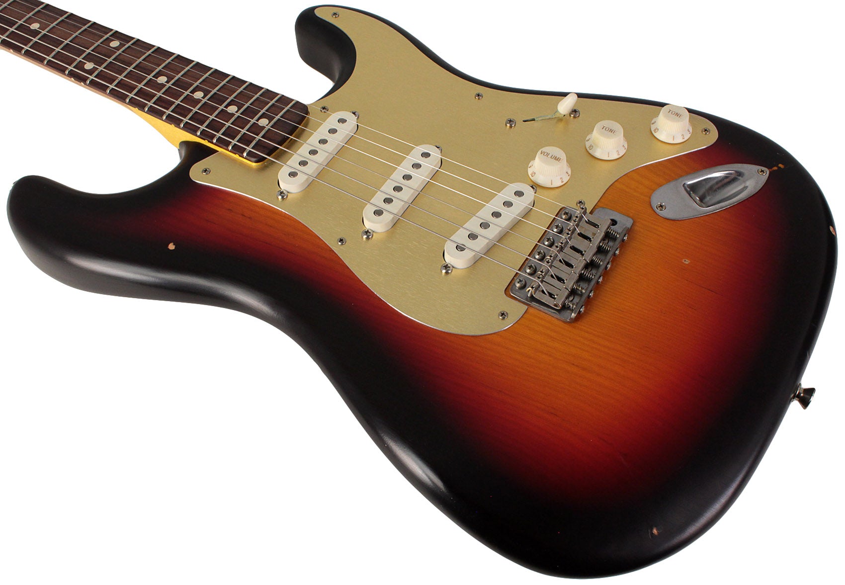 Nash S63 Guitar, 3-Tone Sunburst, Gold PG, Light Aging