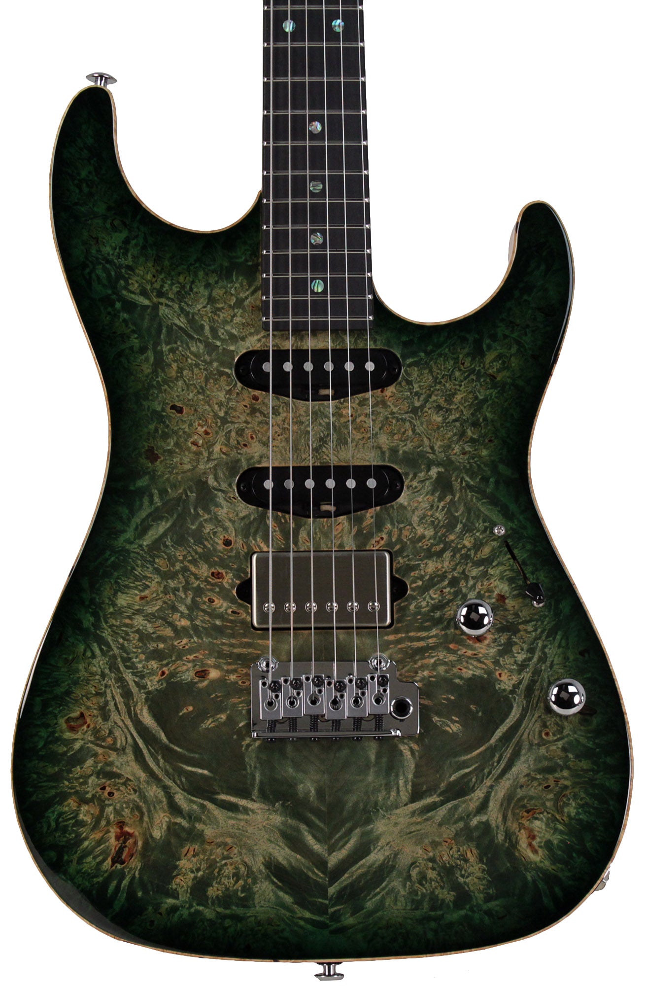 Suhr Select Standard Mahogany Guitar, Burl Faded Trans Green Burst