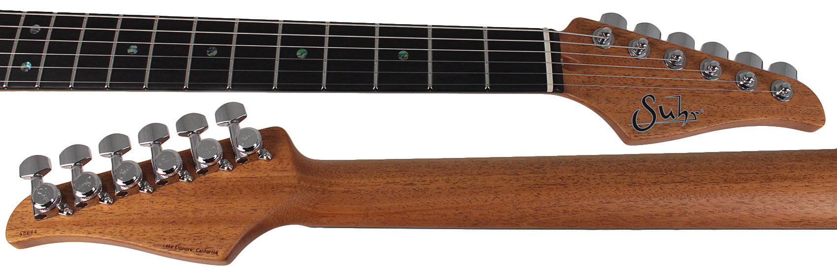 The Select Standard Mahogany is equipped with Suhr's much loved Even C Slim profile. The rolled edges and a 10-14" compound fingerboard radius offers a substantial, yet comfortable shape. The Mahogany neck is finished in satin acrylic urethane, which provides protection from moisture and smooth playing. Each guitar also includes heavy stainless steel frets  and is set up by some of the industry's finest insuring the best possible string action, optimized playability and intonation.