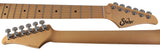 The neck is made from quartersawn tinted maple and features a vintage 60's Medium C shape with medium stainless steel frets. The frets feature rolled edges and a 10"-14" compound radius, great for smooth bends. These appointments create a comfortable, fast feeling neck with long lasting playability.