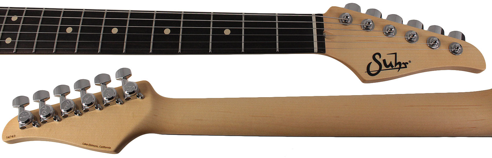 The neck is made from quartersawn tinted maple and features a vintage 60's Medium C shape with medium stainless steel frets. The frets feature rolled edges and a 10"-14" compound radius, great for smooth bends. These appointments create a comfortable, fast feeling neck with long lasting playability.