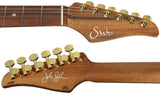 This John Suhr Signature Select Modern features a beautifully book-matched Koa body with a figured Koa top and an all-Koa neck with gold hardware. The 10"-14" compound radius Pao Ferro fingerboard is complete with 24 jumbo stainless steel frets, and Mother of Pearl inlay. This select guitar features Mother of Pearl side dots, a gold gotoh 510 bridge with steel block, along with gold accents including neck screws, knobs, tuning gears, and pickup covers for our SSV and SSH+ pickups.