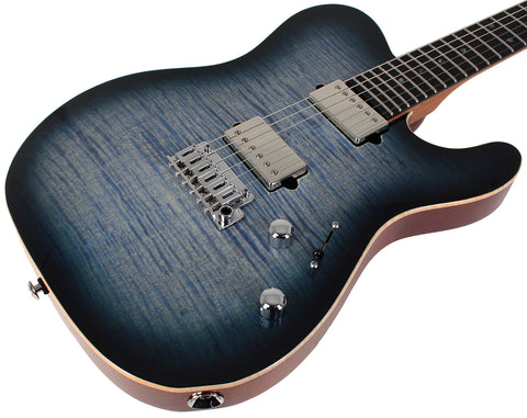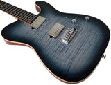 This guitar sports a beautiful Flamed Maple top that when combined with the Okoume body, Mahogany neck, and Thornbucker pickups delivers a fat, well-balanced tone. Smooth without any harsh overtones.