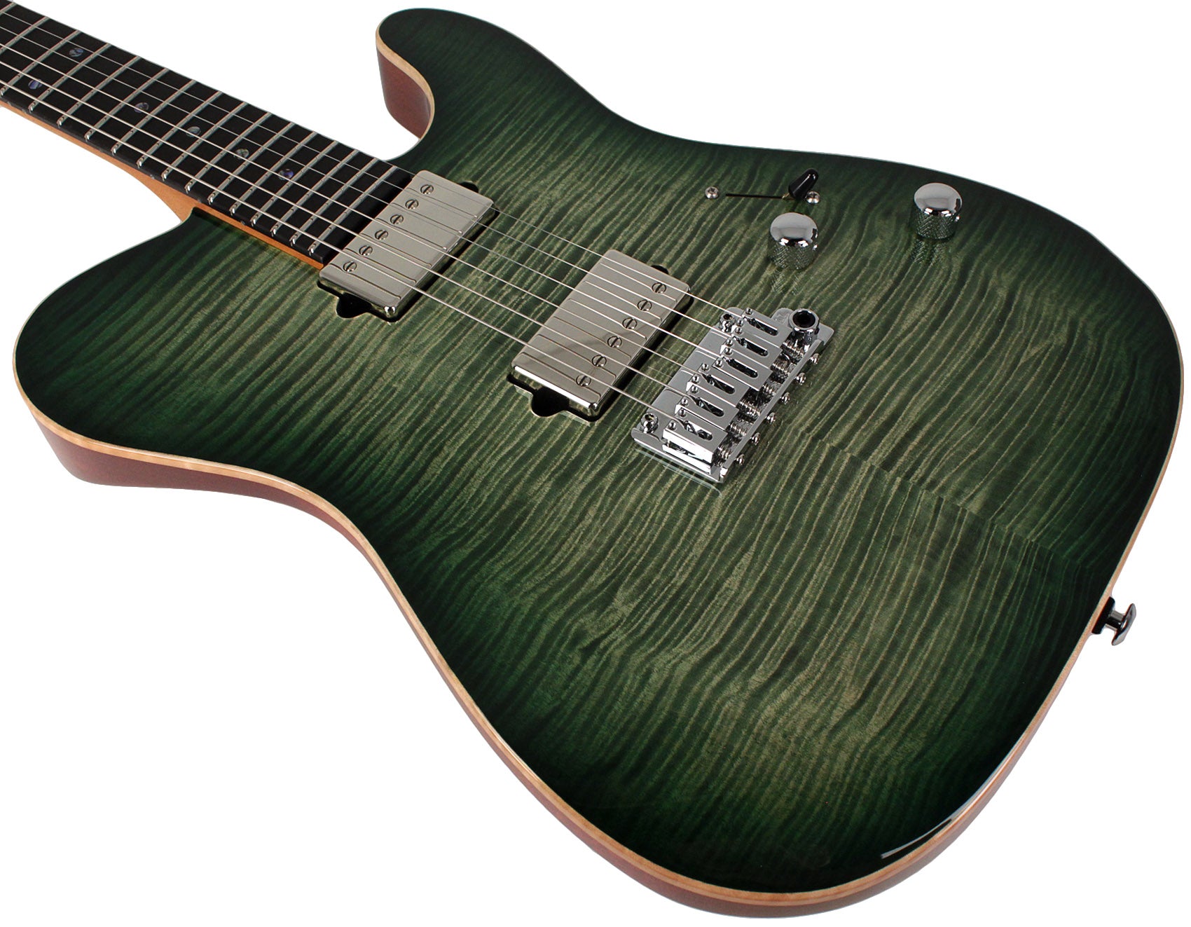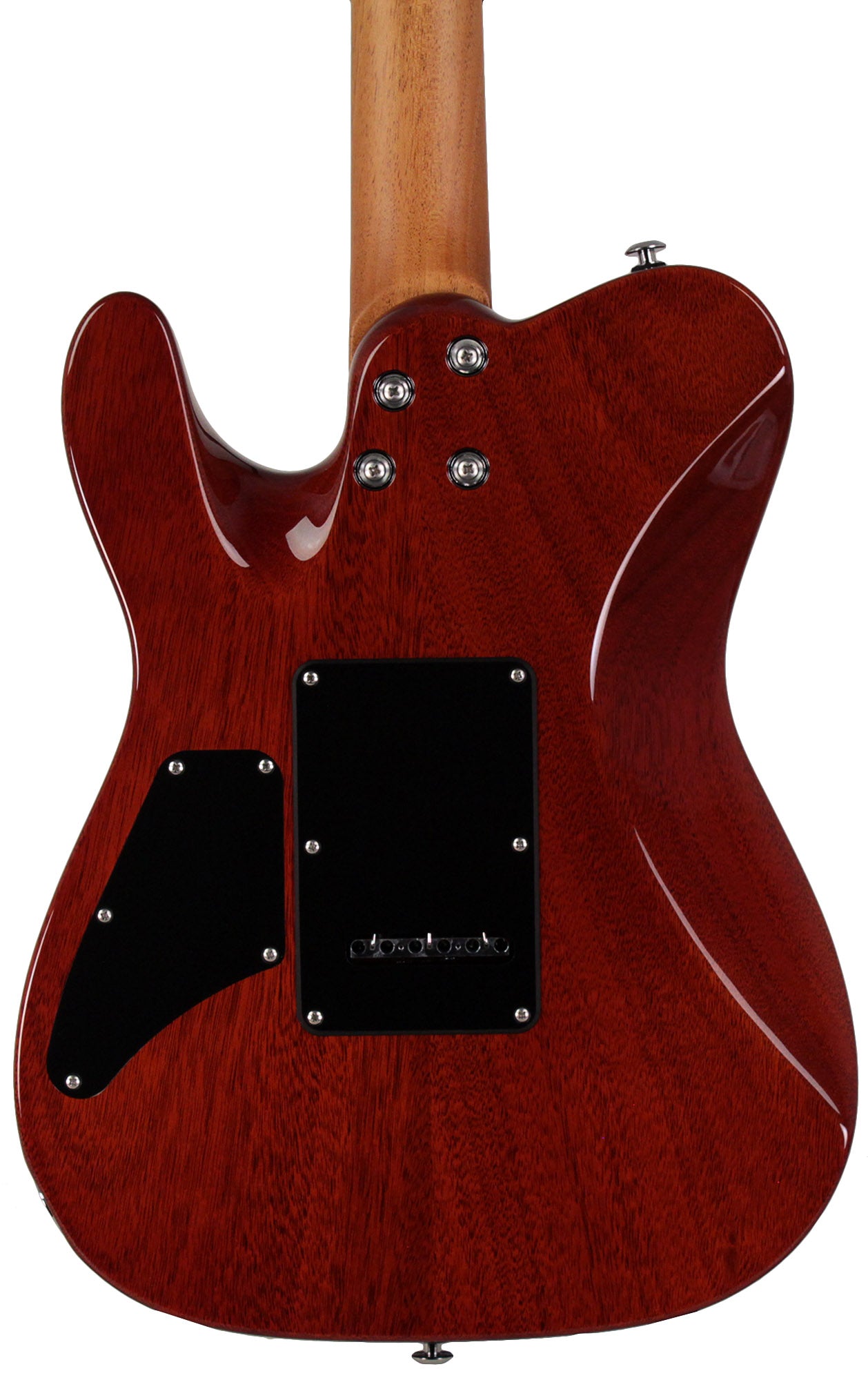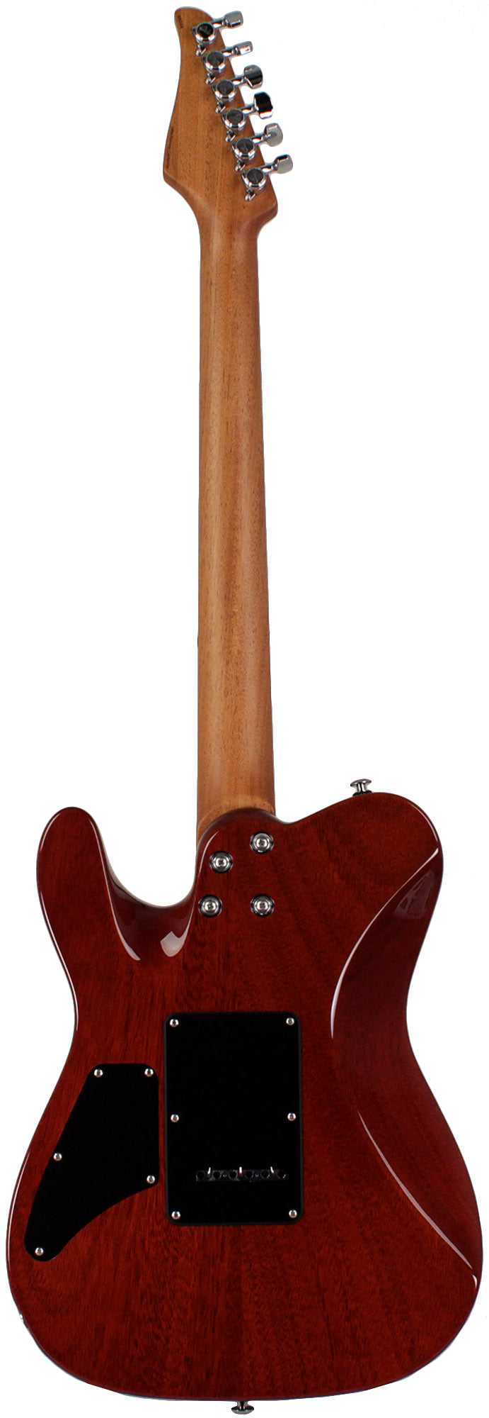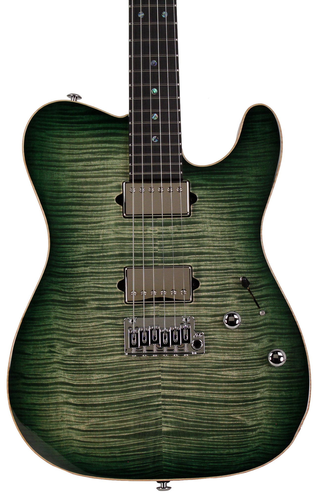 This guitar sports a beautiful Flamed Maple top that when combined with the Okoume body, Mahogany neck, and Thornbucker pickups delivers a fat, well-balanced tone. Smooth without any harsh overtones.