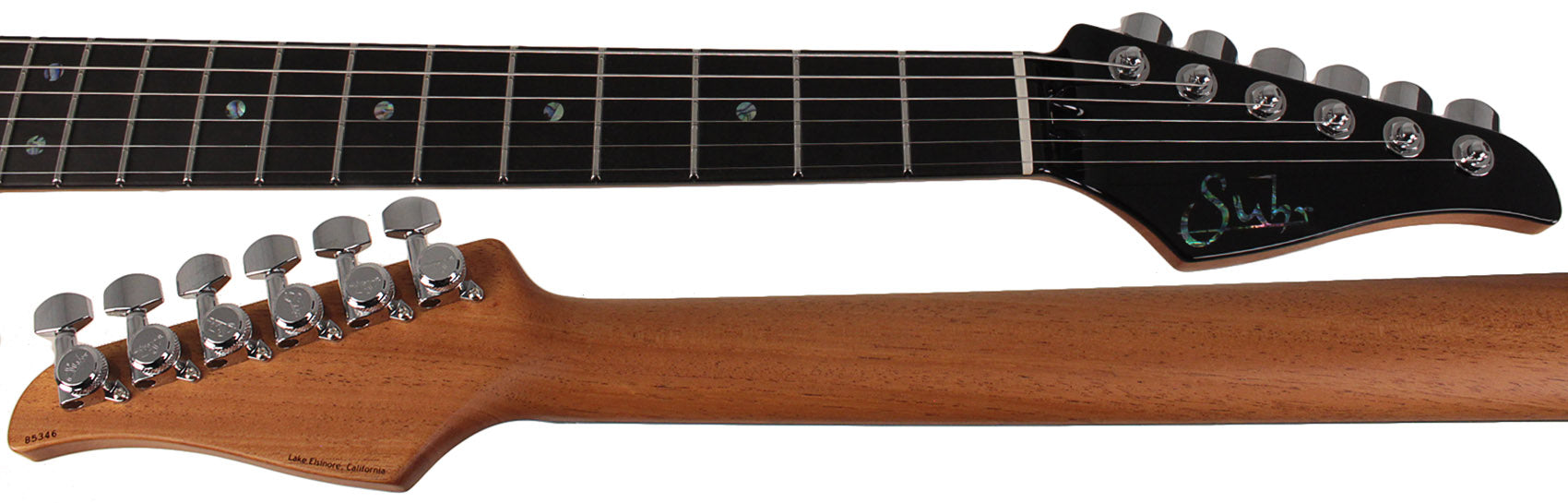 For this run of our exclusive Modern T Select, we chose to replace the rosewood fingerboard with ebony with abalone dots. We also went with a black painted headstock face with an inlayed abalone Suhr logo!