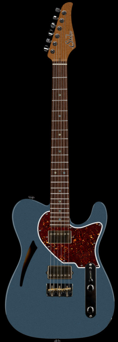 The Suhr Select Alt-T cat's Eye is essentially an Alt-T with some minor refinements. The maple neck is now upgraded to Roasted Maple, the fingerboard markers are Abalone, and the F-Hole has been replaced with the sleek Cat's Eye sound hole. We also chose some custom color/pickguard combinations.