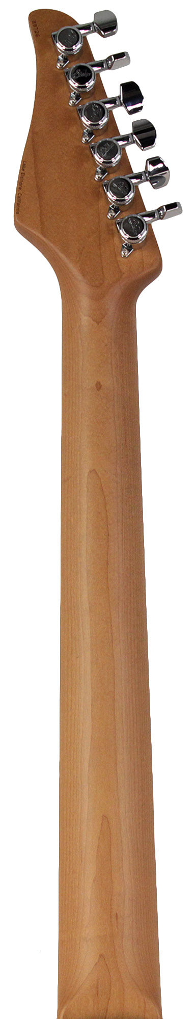 The neck is made from roasted maple and features a vintage 60's Medium C shape with a Rosewood fingerboard, medium stainless steel frets, and Abalone Dot Inlays. The fingerboard has rolled edges and a 9"-12" compound radius, great for smooth bends. These appointments create a comfortable, fast feeling neck with long lasting playability.