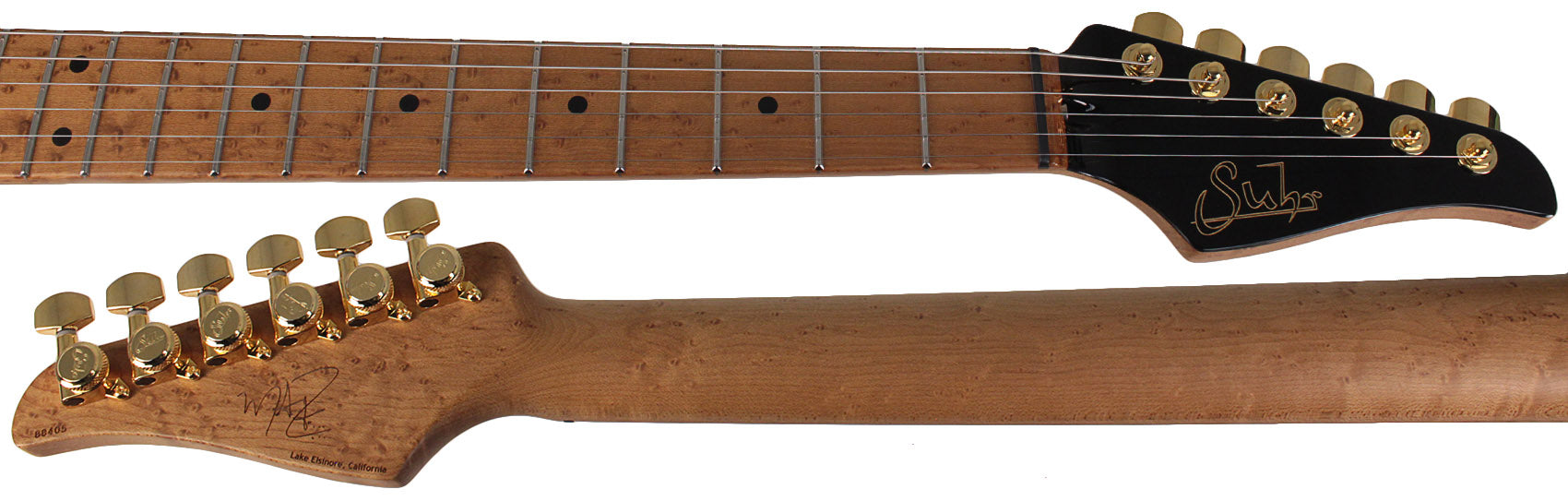 The Mateus Asato Signature Series features Suhr's Even C Medium neck profile, which is carved from silky-smooth satin finished Roasted Maple. The Indian Rosewood fingerboard features our 9″-12″ compound radius and is appointed with 22 stainless steel heavy frets. A Gotoh 510 tremolo, ML single-coils, and Custom Alnico humbucker complete the specs. Each guitar comes with a special laser-engraved neck plate, Mateus’ signature on the back of the headstock, and is delivered in a classy black tolex hardshell case.