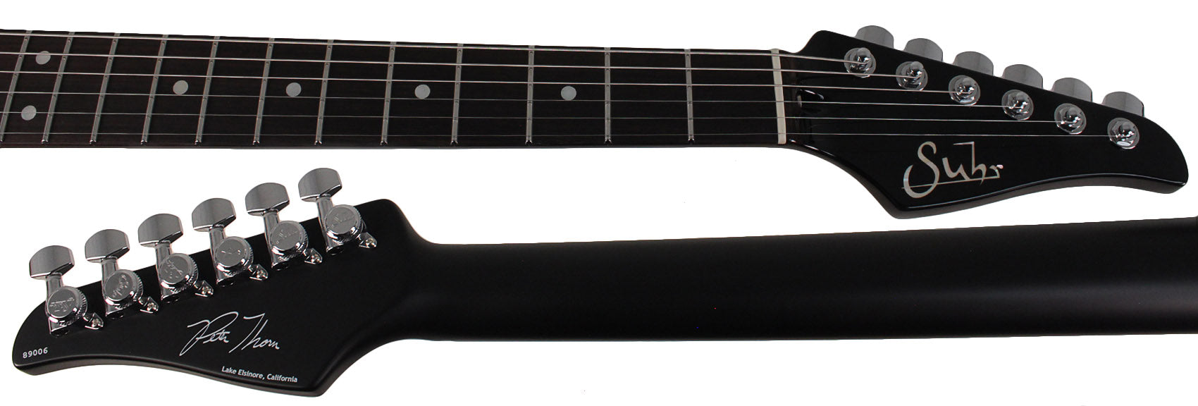 Pete has been a Suhr artist for over 10 years, and has previously partnered with Suhr to design and produce his signature PT100 amplifier and Thornbucker pickups. The guitar is based off of a custom spec Suhr Standard model that Pete has used extensively in the studio and on tour for the last two years. It’s equipped with Thornbucker pickups (with pickup rings, a first for Suhr) and a super comfortable and fast Even C Slim neck.