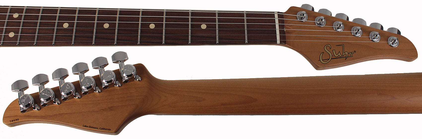 The Standard Plus is equipped with Suhr's much loved Even C Slim profile. Rolled edges and a 10-14" compound fingerboard radius offers a substantial, yet comfortable shape. The Roasted Maple neck is finished in satin acrylic urethane, which provides protection from moisture and smooth playing. Each Standard Plus also includes heavy stainless steel frets.