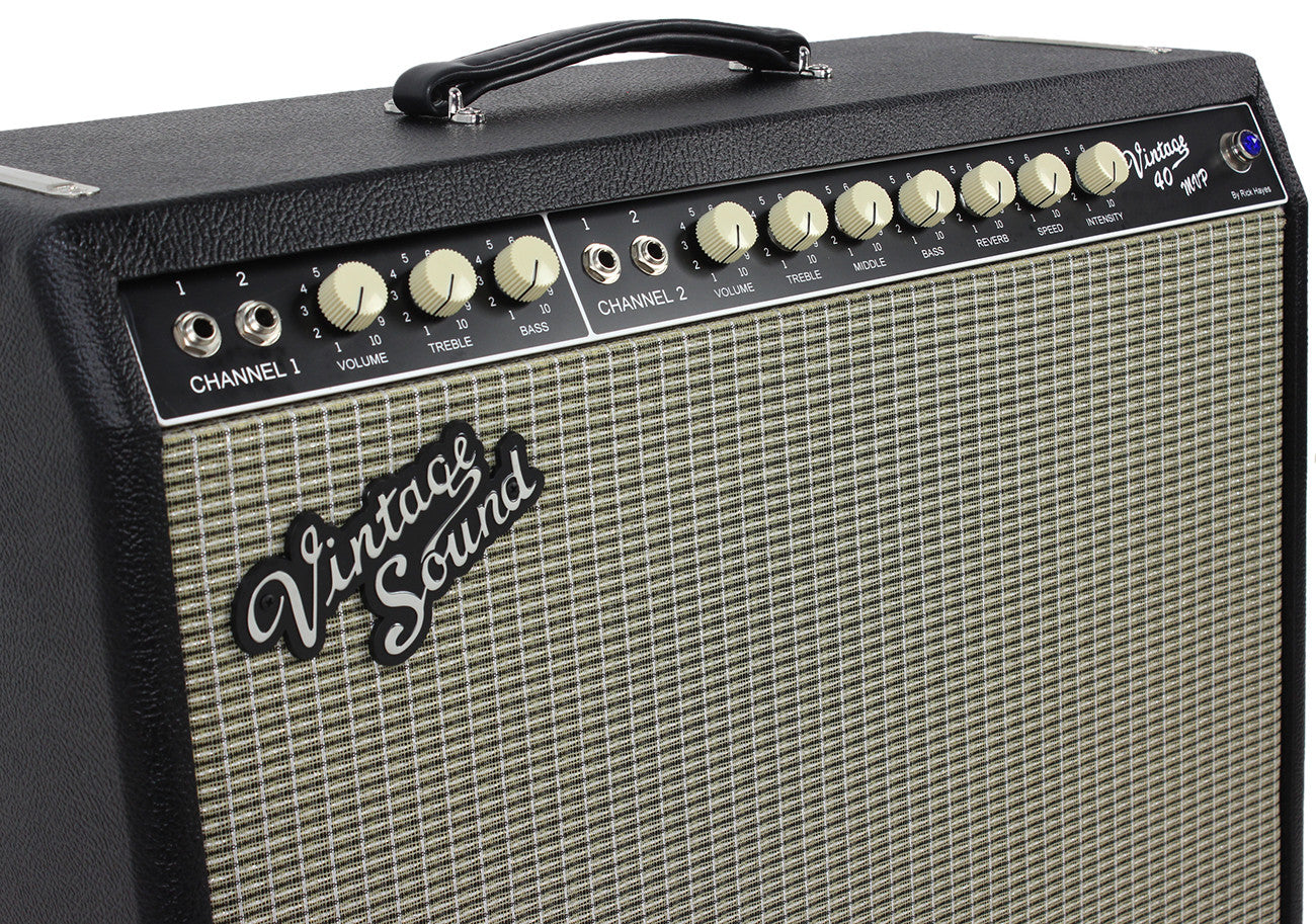 Right! Fender never made a 1x12 combo! Hard to believe... They had an AB763 that was a 1x12, but it was only 22 watts (Deluxe Reverb). If you wanted that fat, thick 6L6 tone, you HAD to use one of the configurations above. The Vintage Sound 40mvp addresses that, but with bonuses! We'll get to the bonuses later.