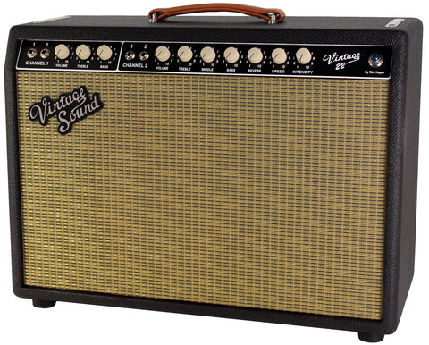 The Vintage Sound Vintage 22 is essentially an all hand-wired, all USA made, 60's era Fender Deluxe Reverb, but slightly modified with definite improvements. At the root is, of course, the AB763 blackface circuit.