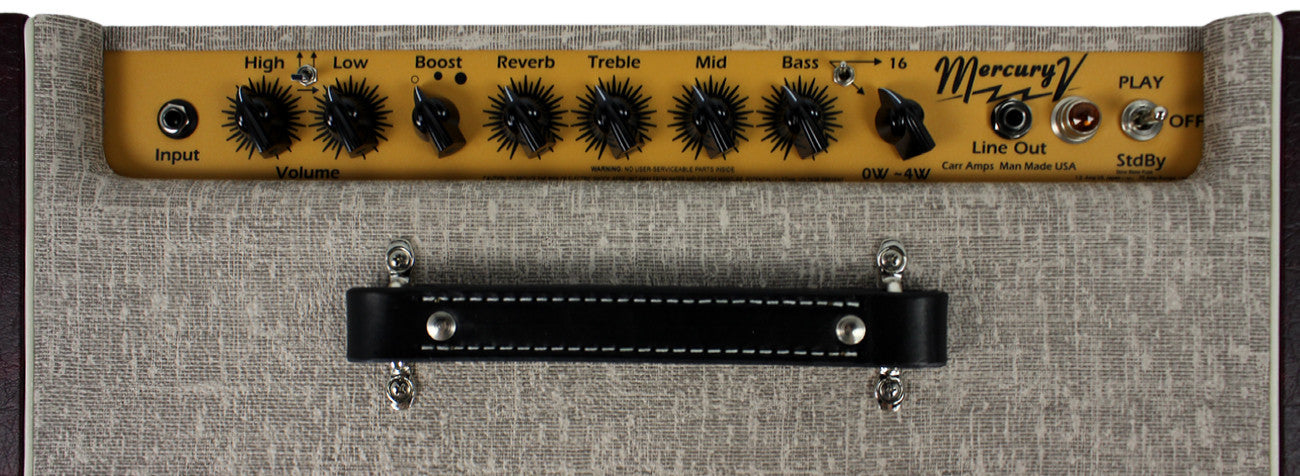 Other than that, it's changed quite a bit. While the original Mercury was powered by an EL34, it was a single ended amp, meaning it had a lot of the single ended qualities of a Champ type amp. This version is now powered by dual 6V6 Class A power section giving it a more British feel than before, and at 16 watts, more power as well. When the attenuator is engaged, you drop to 4 watts, where you can vary the output from 4 down to 0 watts.