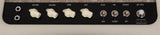 Starting from right to left, the single input of the amplifier (high and low sensitivity) feeds the inputs of two 5879 Pentodes, each with its own volume control and blendable. Each is voiced differently: one is brighter with more clean headroom while the other has more gain and is thicker in the low mids. Added to this volume is a 6 position switch which offers a "bright cap" selection. The last knob is a high cut for the overall amplifier. The "Mode" toggle provides a selection of either 9+ Watts with 6V6s, or 15+ Watts with EL84s, offering and exceeding the best tones available in some of our favorite late 50's American 6V6 amplifiers, and our favorite EL84/EL34 English amplifiers. Don't be fooled by its size; this one sounds huge!