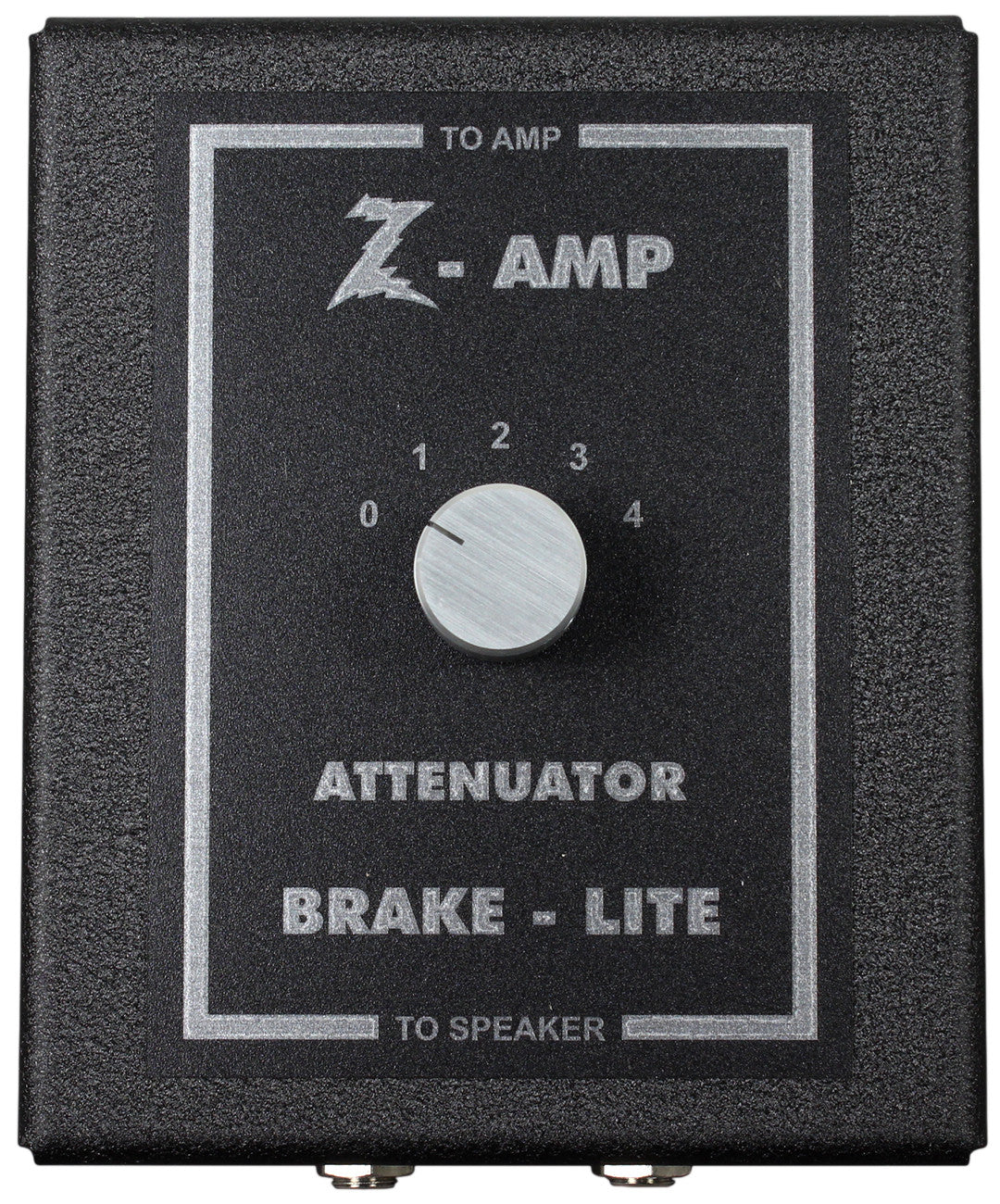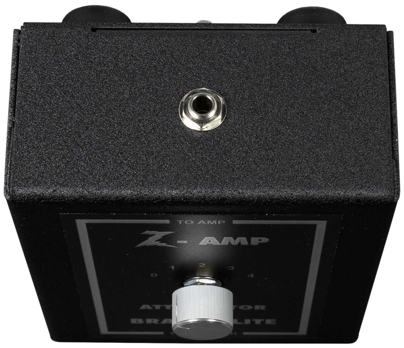 The Brake Lite SA measures 6" x 5" x 3.25" and weighs in at 1.5 lbs. Four half-inch feet give plenty of clearance for resting on top of your amp. At the Zero setting the Brake Lite SA is fully bypassed.