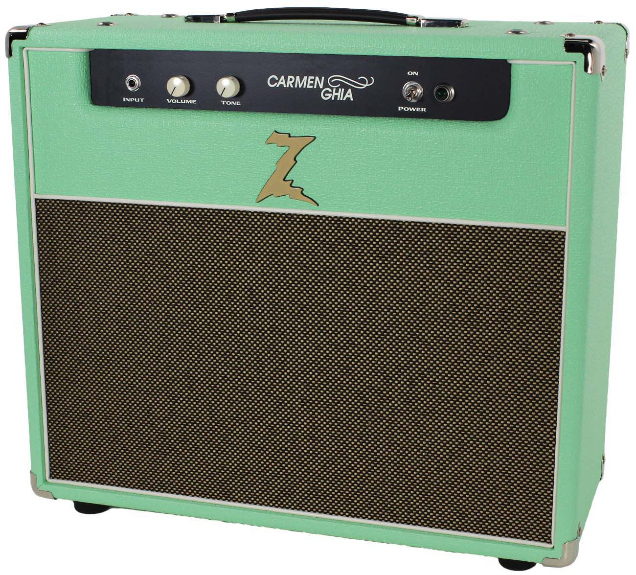 The Carmen Ghia has become a favorite in recording studios around the world, but it's also quite comfortable on stage competing with a rabid drummer. This is 18 watts of all tube, point to point, hand-wired, top quality amp here... It's much louder than the norm.