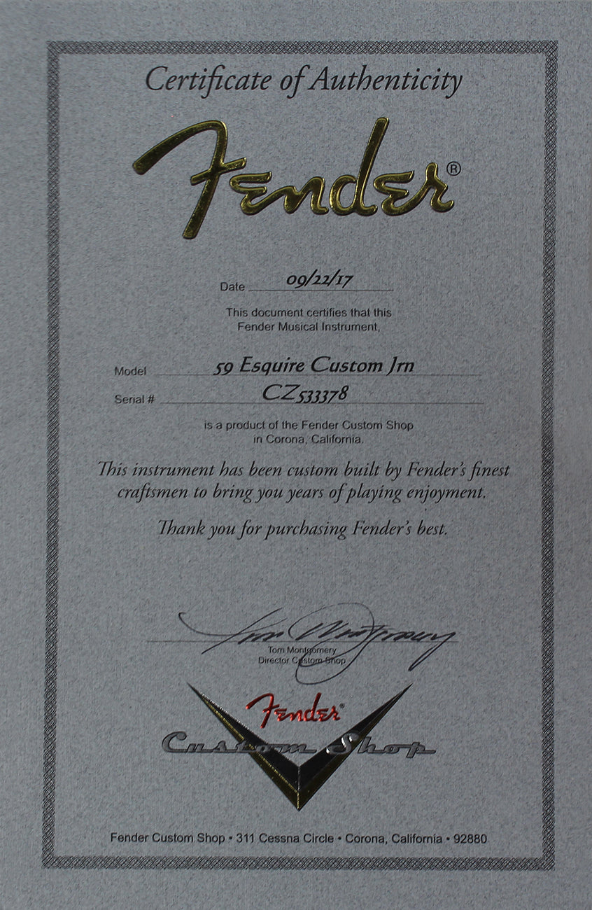Accessories: Deluxe Hardshell Case; Strap; Certificate of Authenticity