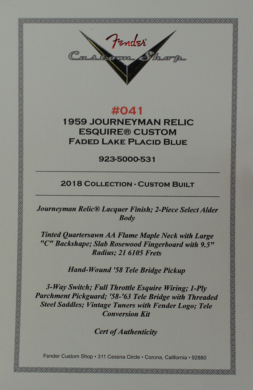 Fender Custom Shop Journeyman 1959 Custom Esquire, Lake Placid Blue