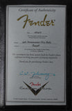 The choice of Fender Custom Shop hand-wound pickups gives you a wide range of versatility while still retaining a vintage feel and vibe to the tone. The FCS '69 Neck is thick yet punchy and able to cut through the mix without being too sharp. The FCS Fat 50's middle pickup gives you a very wide range of dynamic from thick bass, to crystalline highs. For the bridge position, we went with a handwound Texas Special that is slightly overwound giving you a slightly hotter signal across the frequency range. Tight bass, midrange chirp, and crystal clear highs are what these pickups are all about.