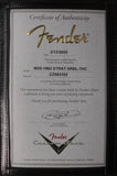 Other premium features include Vintage Modified #2 wiring with Tone-Saver bleed circuit (eliminates tone loss when volume is turned down), five-way pickup switch, three-ply mint green pickguard, Custom Shop vintage synchronized tremolo bridge, vintage-style tuners, wing string tree with tall metal spacer, deluxe hardshell case, strap and certificate of authenticity.