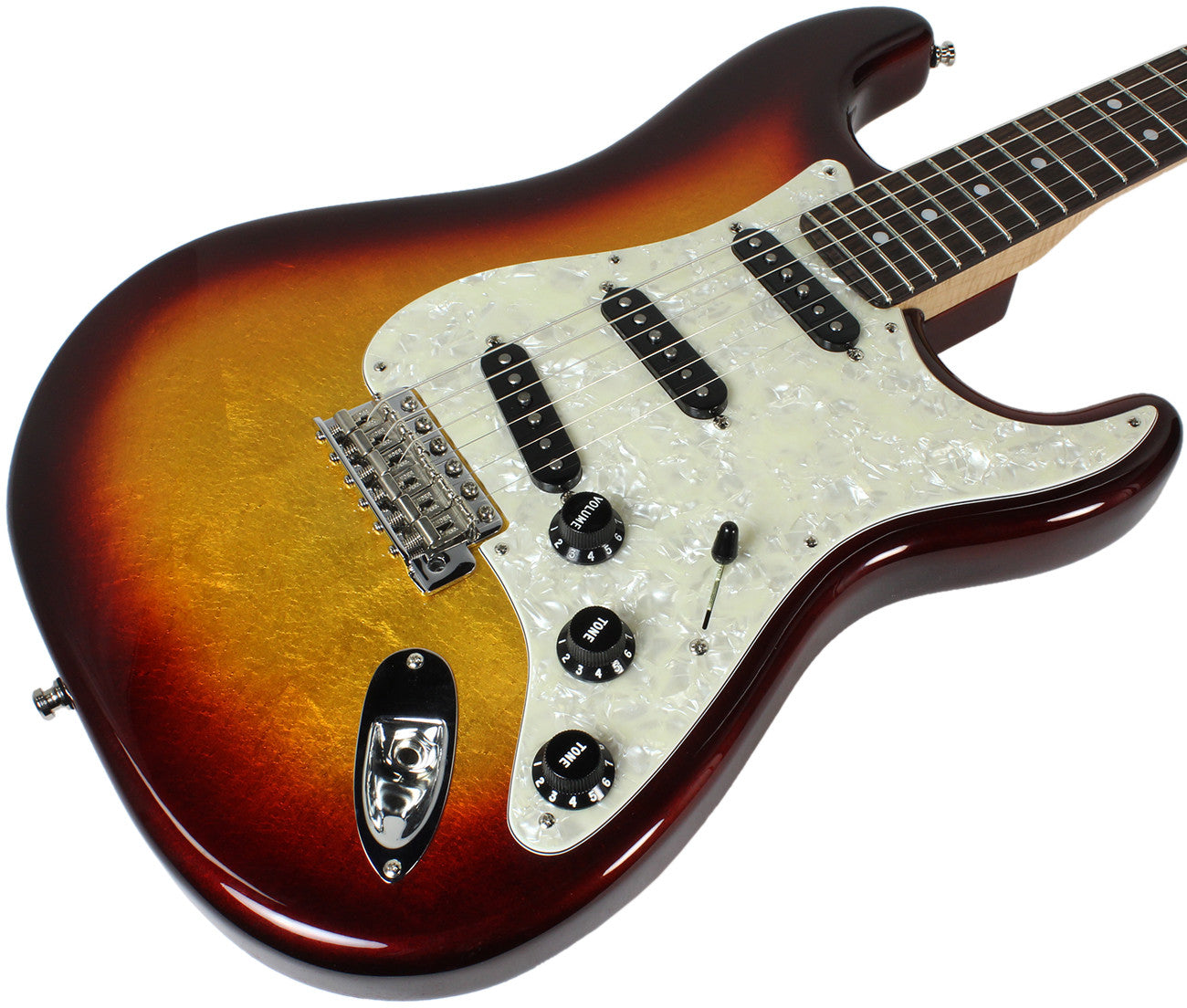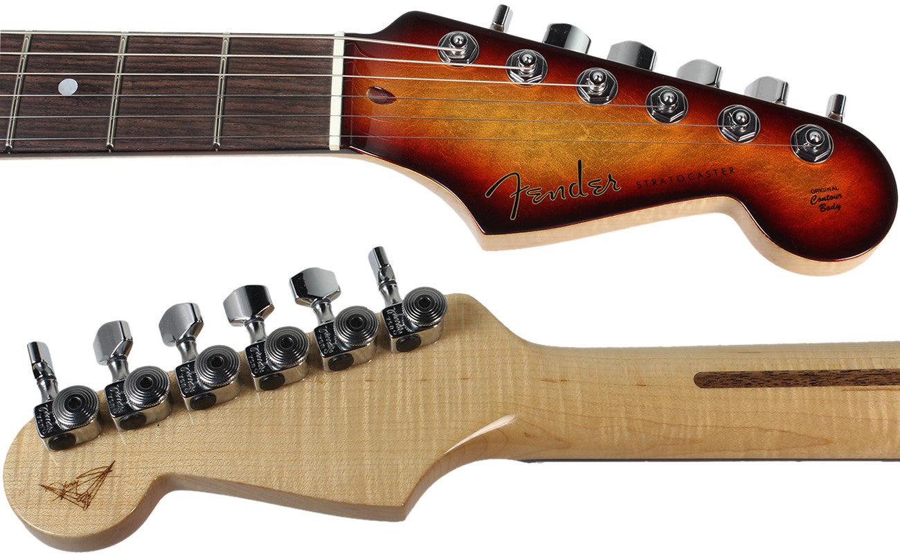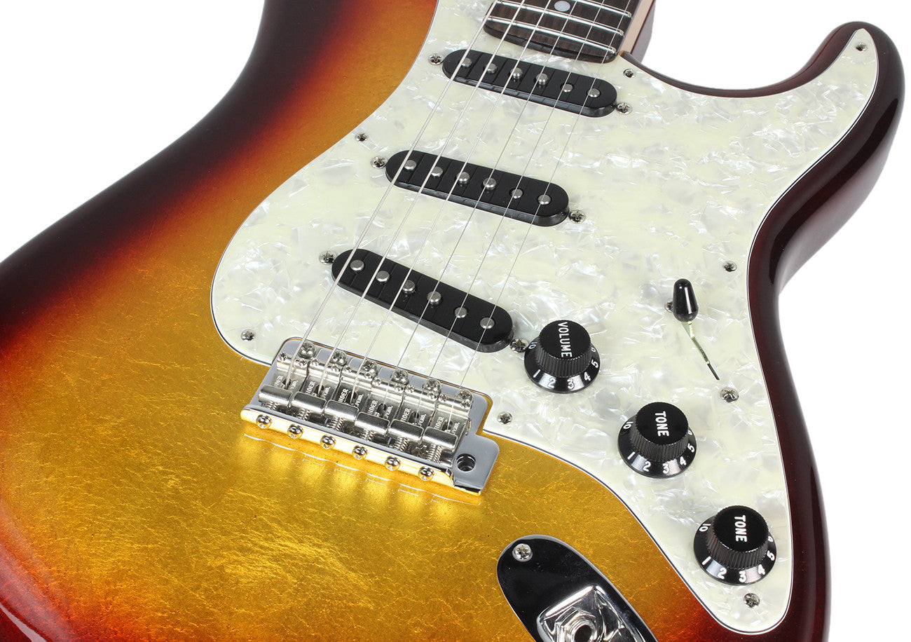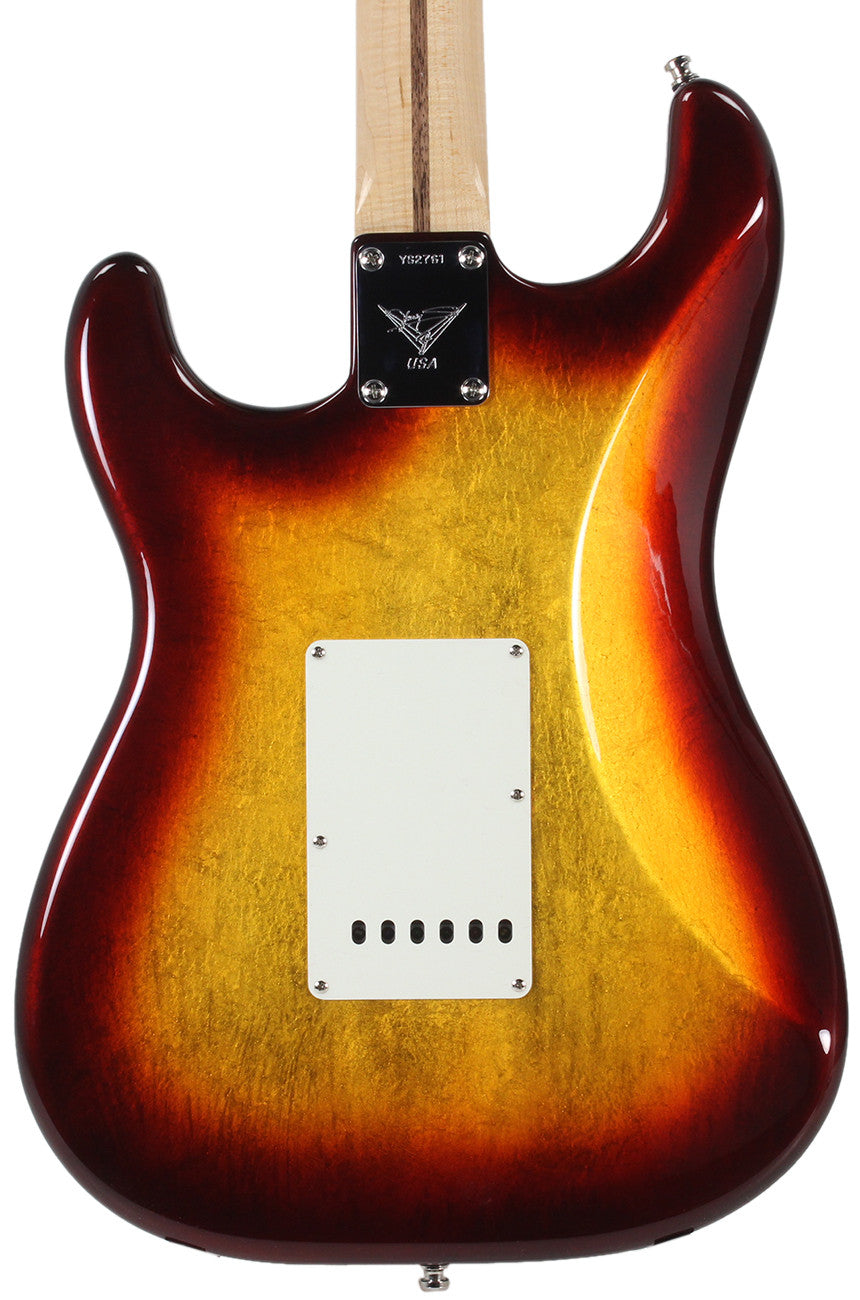 This Yuriy Shishkov Masterbuilt Stratocaster features a rare Cherry Burst over Gold Leaf NOS finish with a matching headstock.