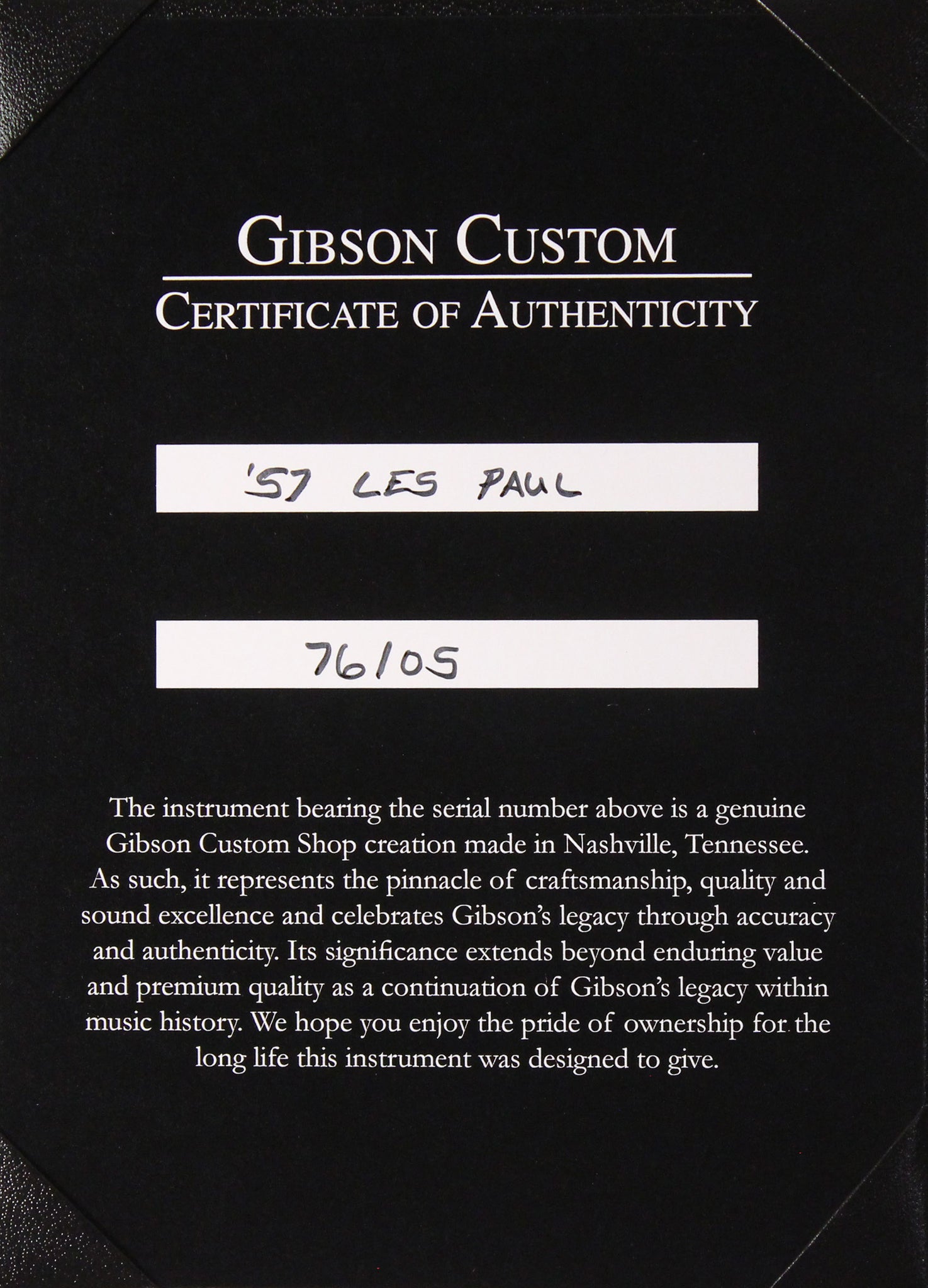 Accessories: Gibson Custom Switchplate Medallion (w/ Historic Black Plastic Cover in Case), Certificate of Authenticity Booklet, Historic Reissue Hang Tags