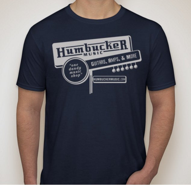 Humbucker Music Vintage Retro Guitar Store T-Shirt, Navy Blue