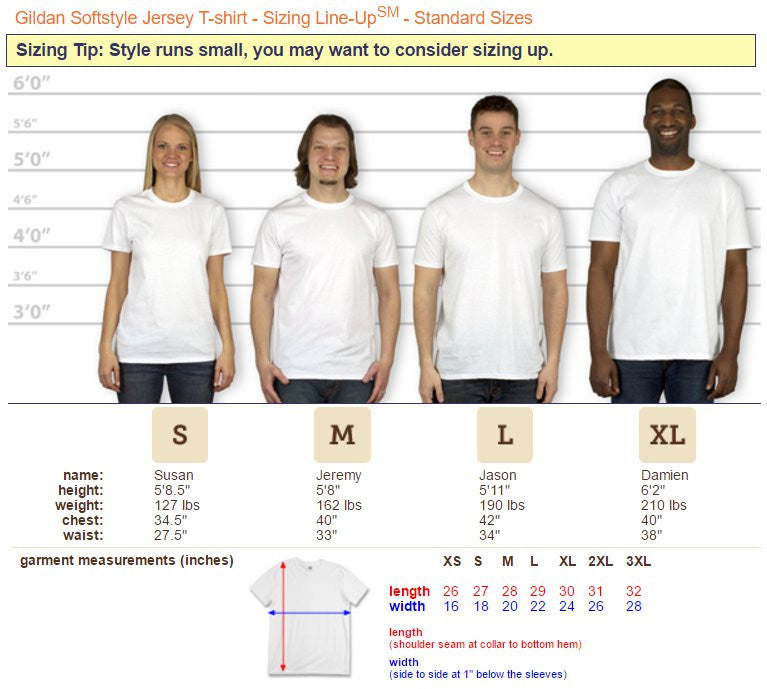 For our Humbucker Music Men's T-Shirts, we use the popular Gildan 64000 Soft Style Ring Spun Cotton T.