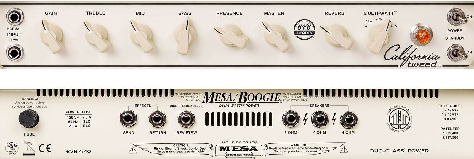 Mesa's Patented Incremental Multi-Watt Power Amp, featuring Duo-Class and Dyna-Watt technologies, provides five power, two operating-classes and three wiring configuration options via one 5-Way Power Switch: