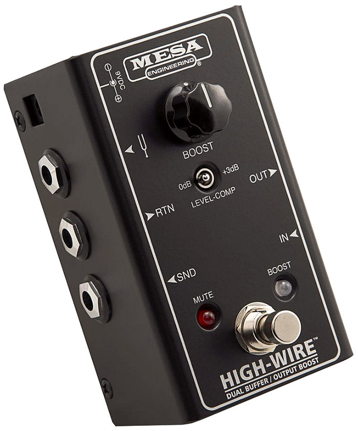 The Mesa Boogie HIGH-WIRE is a Dual Buffer and Line Driver in a one-stop solution that addresses both Input and Output challenges in the same space saving chassis. Between Instrument and pedals, it provides a stable, consistent load for your guitar’s pickups, ensuring your signal arrives at the first pedal intact and full of Tone. From Pedal Board to the amplifier, it not only buffers the signal, ensuring optimum impedance loading and performance, but also allows for increased signal levels for extra long cable runs via the built-in Line Driver (Footswitchable Boost) feature. As with the Stowaway, all buffer circuitry is 100% discrete Class-A. The HIGH-WIRE also incorporates a fixed +3dB BOOST on a top mounted mini-toggle. The Footswitch is Dual Function and allows both the variable BOOST when hit once and a MUTE when held for a second. The HIGH-WIRE is the ultimate all-in-one Pedal Board signal loss remedy.