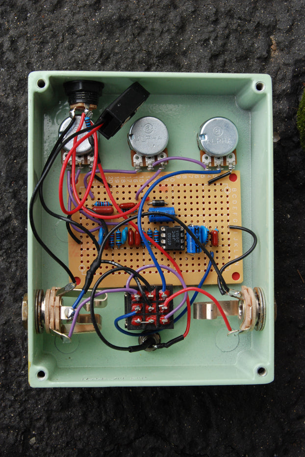 Each pedal is handwired at Nash Guitars. There are no pre-printed circuit boards. These pedals will be built in units of 25 at a time and each batch will be a different color.