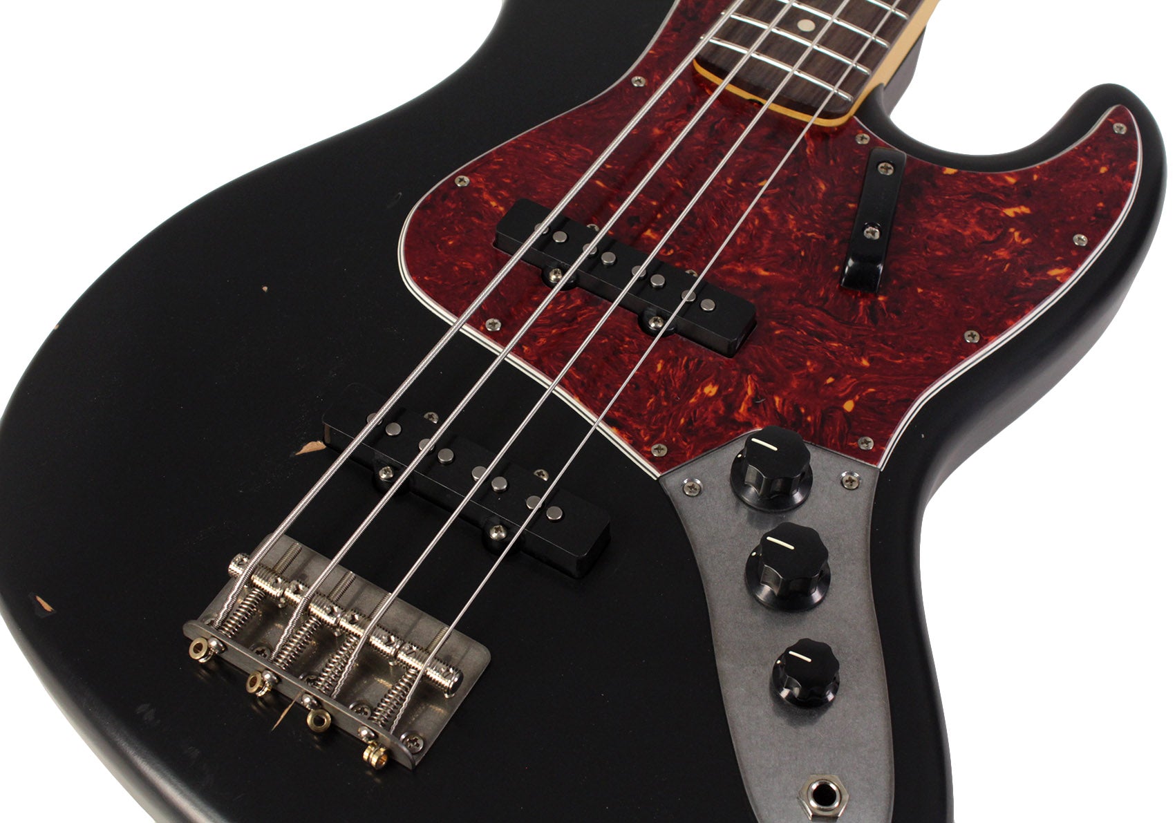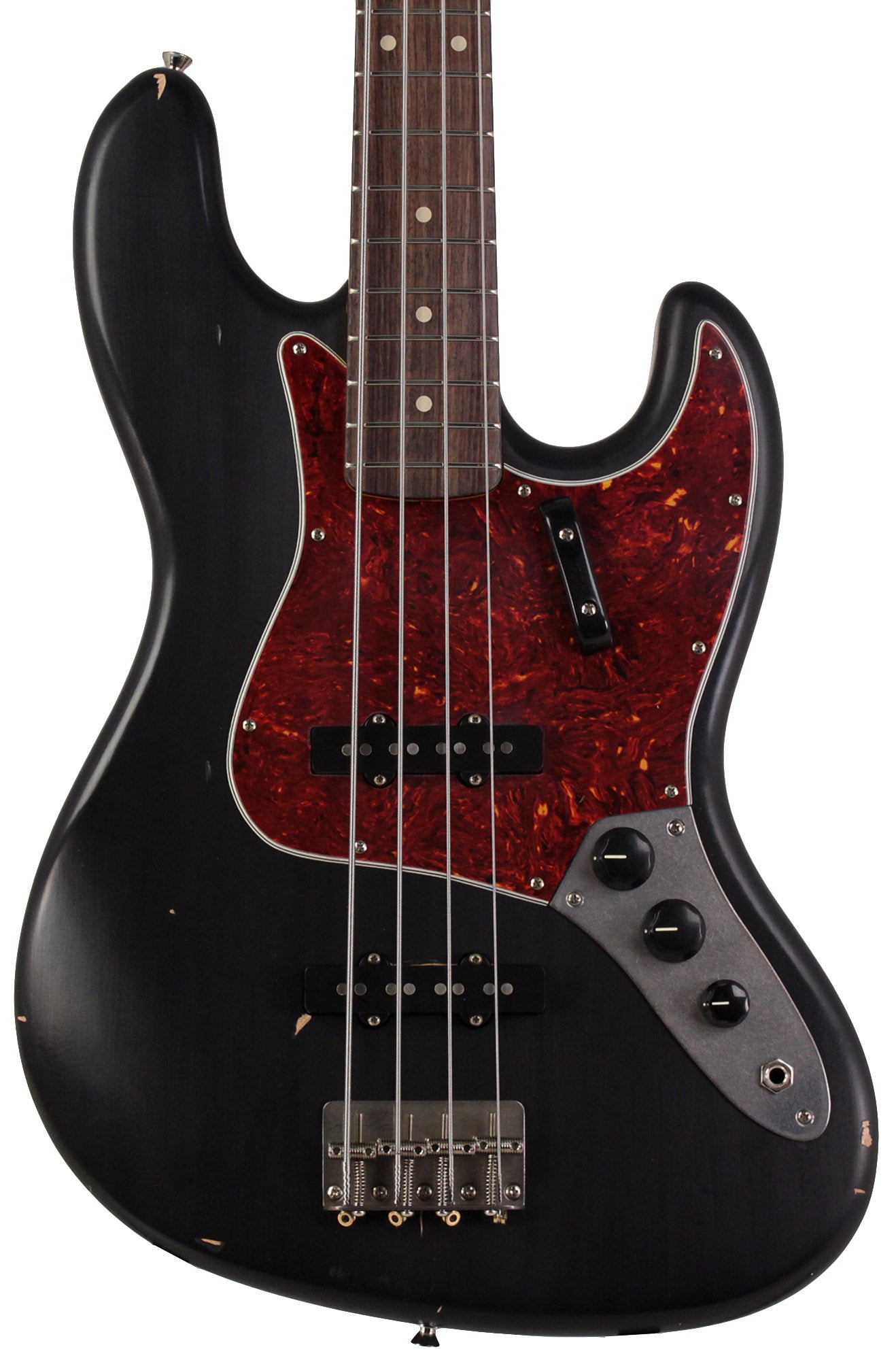 Nash JB63 Bass Guitar, Black, Tortoise Shell, Light Aging