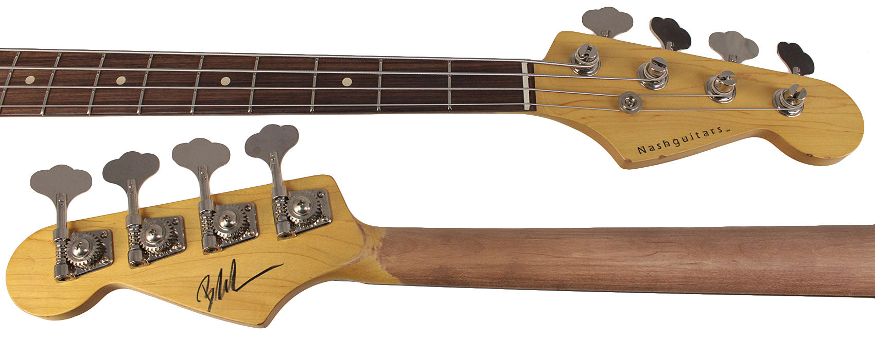 If anyone knows about building vintage guitars, it's Bill Nash! He has worked with a HUGE number of them for many years and has a great deal of knowledge about how a vintage guitar looks and feels. The aged control knobs, pickguards, dinged and scratched finish, and aged hardware make the bass look old, but the modern techniques used to make the guitar ensure that it plays like a brand new instrument. Each Nash JB-63 is built by hand, so each one is completely unique. It features a Maple Neck, an alder body, and a Jason Lollar hand-wound pickup. The bridge is a high quality aged traditional bridge with adjustable steel saddles made from top shelf materials, and the entire bass is given a level of wear and tear via an aging process.