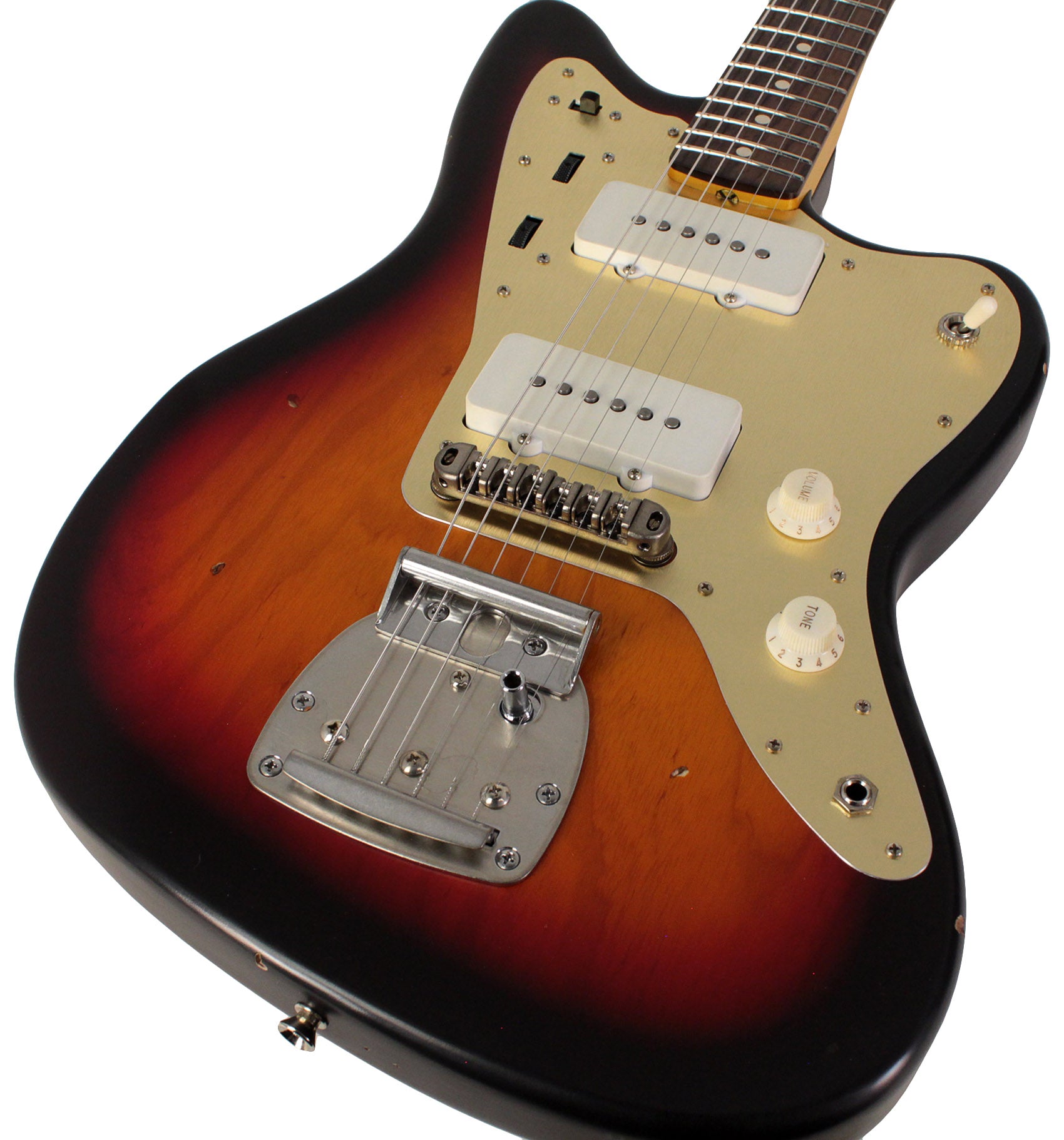 Nash JM63 Jazzmaster Guitar, 3 Tone Sunburst, Gold Anodized Pickguard, Light Aging