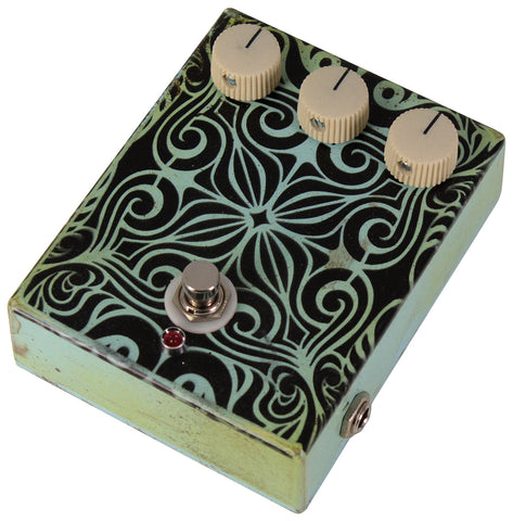 The Tone Control (Middle Knob) is a 100K linear taper potentiometer and controls the frequency contour of the pedal. From warm and tweedy smooth, all the way to biting, in-your-face brightness, ideally suited for leads. Many players may find there to be a notch, or sweet spot on the tone control, from about 11:00-1:00 as a clock stands.