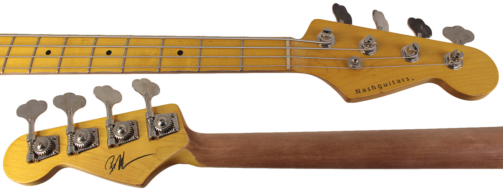 If anyone knows about building vintage guitars, it's Bill Nash! He has worked with a HUGE number of them for many years and has a great deal of knowledge about how a vintage guitar looks and feels. The aged control knobs, pickguards, dinged and scratched finish, and aged hardware make the bass look old, but the modern techniques used to make the guitar ensure that it plays like a brand new instrument. Each Nash PB-57 is built by hand, so each one is completely unique. It features a maple neck, an ash or alder body, and Jason Lollar hand-wound pickups. The bridge is a high quality aged traditional bridge with adjustable steel saddles made from top shelf materials, and the entire bass is given a level of wear and tear via an aging process.