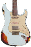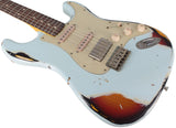 Nash S63 Guitar, Sonic Blue over 3 Tone Sunburst, Hardtail, HSS