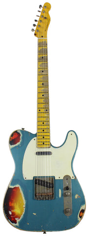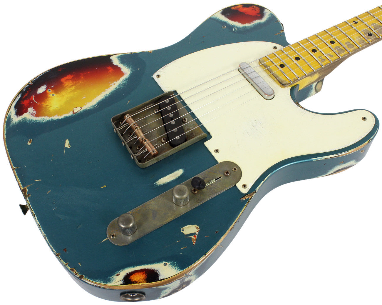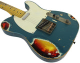 Nash T57 Guitar, Turquoise over 3 Tone Sunburst, Very Heavy Relic