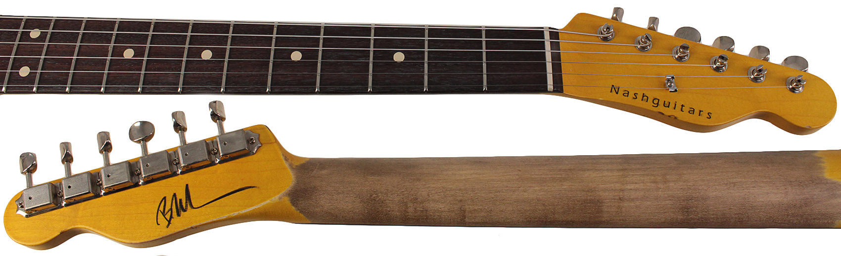 If anyone knows about building vintage guitars, it's Bill Nash! He has worked with a HUGE number of them for many years and has a great deal of knowledge about how a vintage guitar looks and feels. The aged control knobs, pick guards, body binding, dinged and scratched finish, and aged hardware make the guitar look old, but the modern techniques used to make the guitar ensure that it plays like a brand new instrument. Each Nash T-Master is built by hand, so each one is completely unique. It features a rosewood fingerboard, an Ash body, and Jason Lollar hand-wound pickups. The bridge is made from vintage parts, and the entire guitar is given a light level of wear and tear via a relicing process.