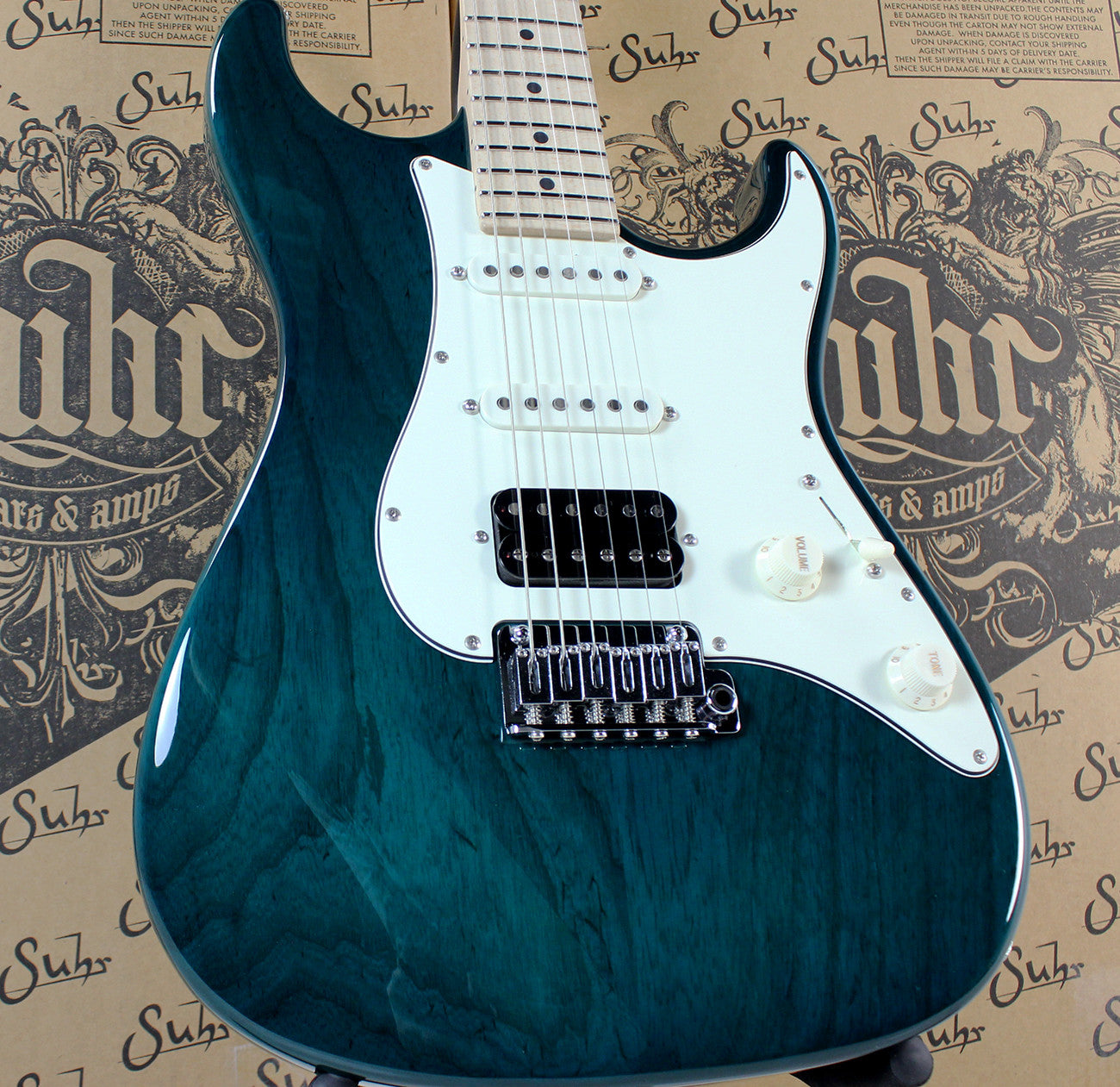 Suhr Throwback Standard Pro Guitar, Trans Teal, Maple
