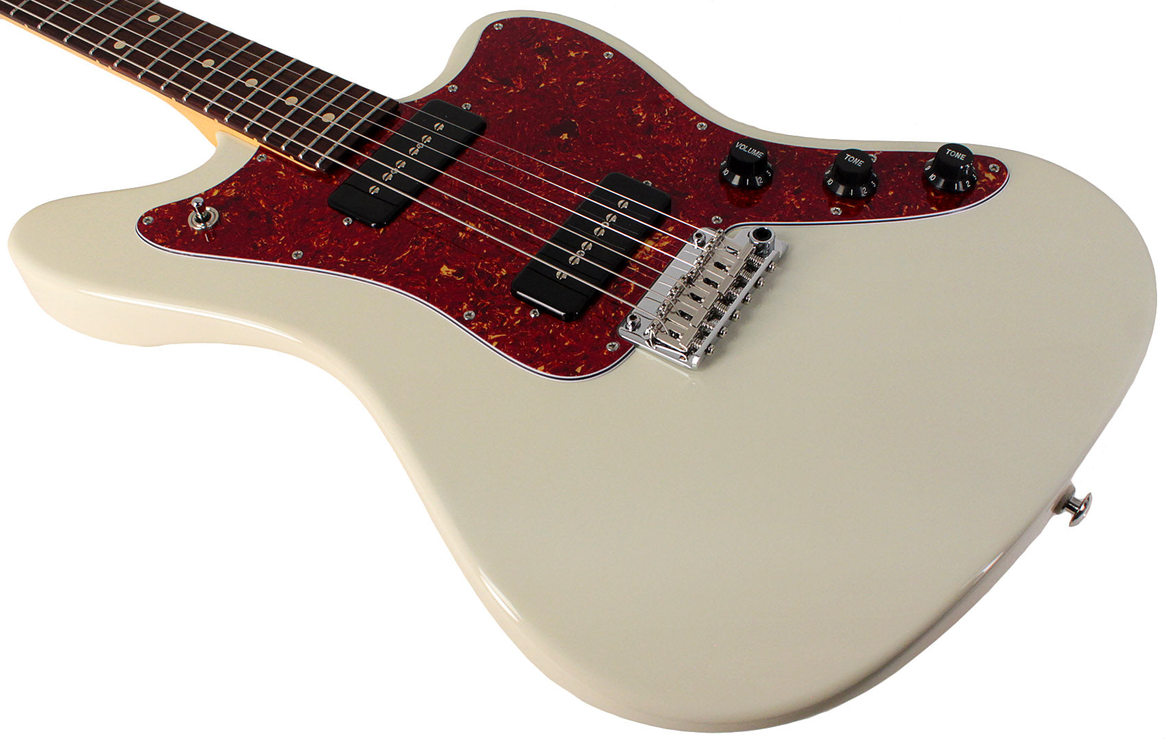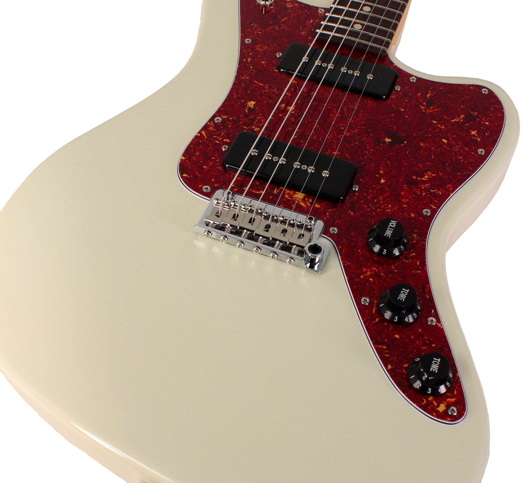This Classic JM features two huge sounding but hum-free (using and active Silent Single Coil II System) S90 pickups with a low profile three way pickup selector.