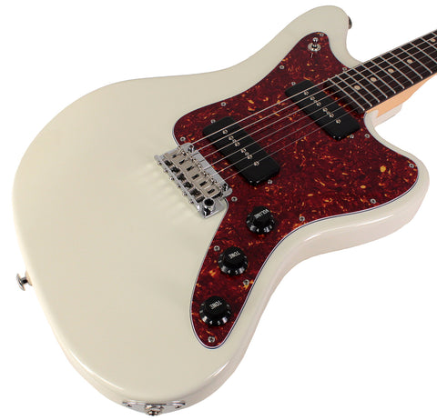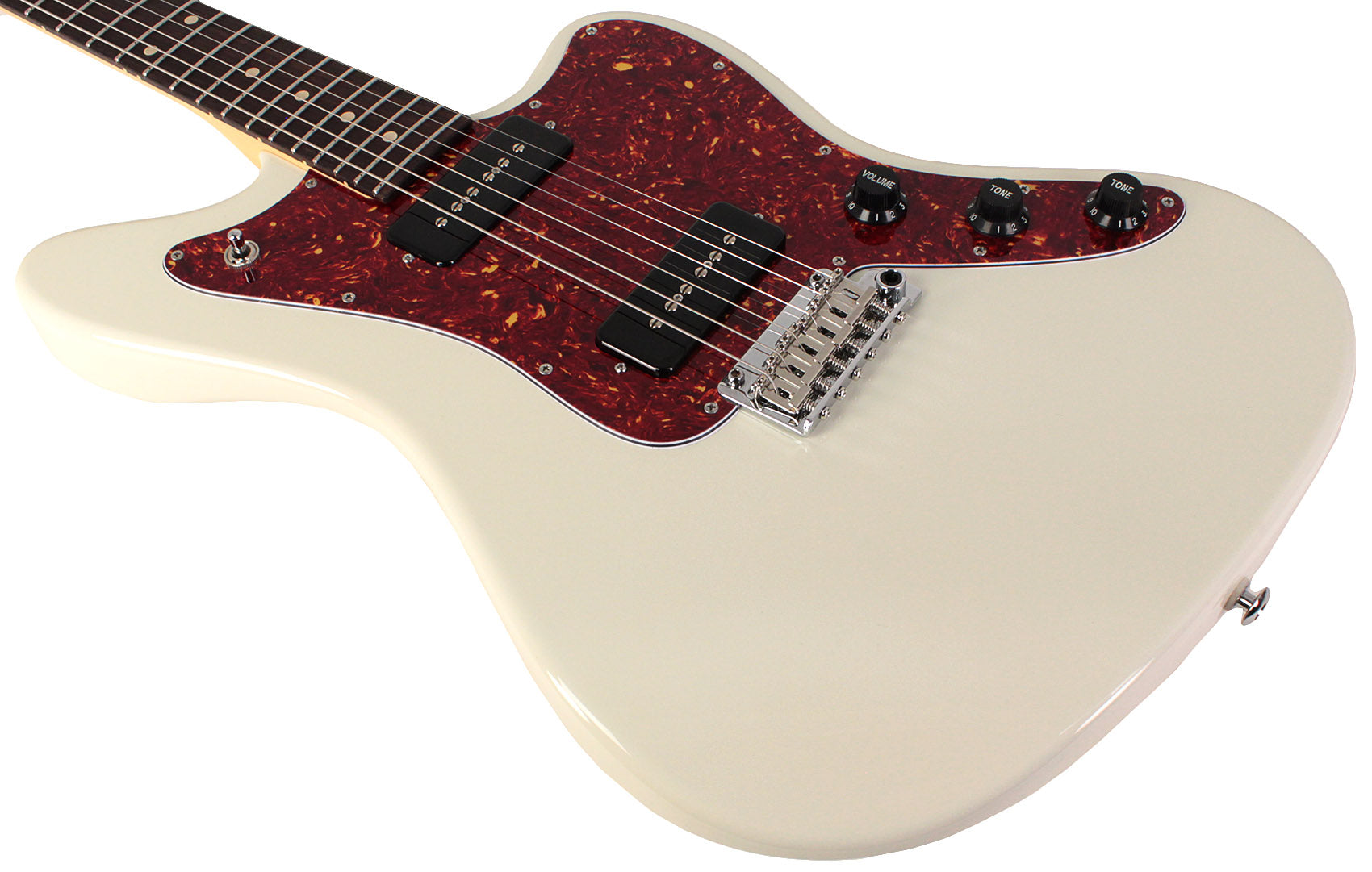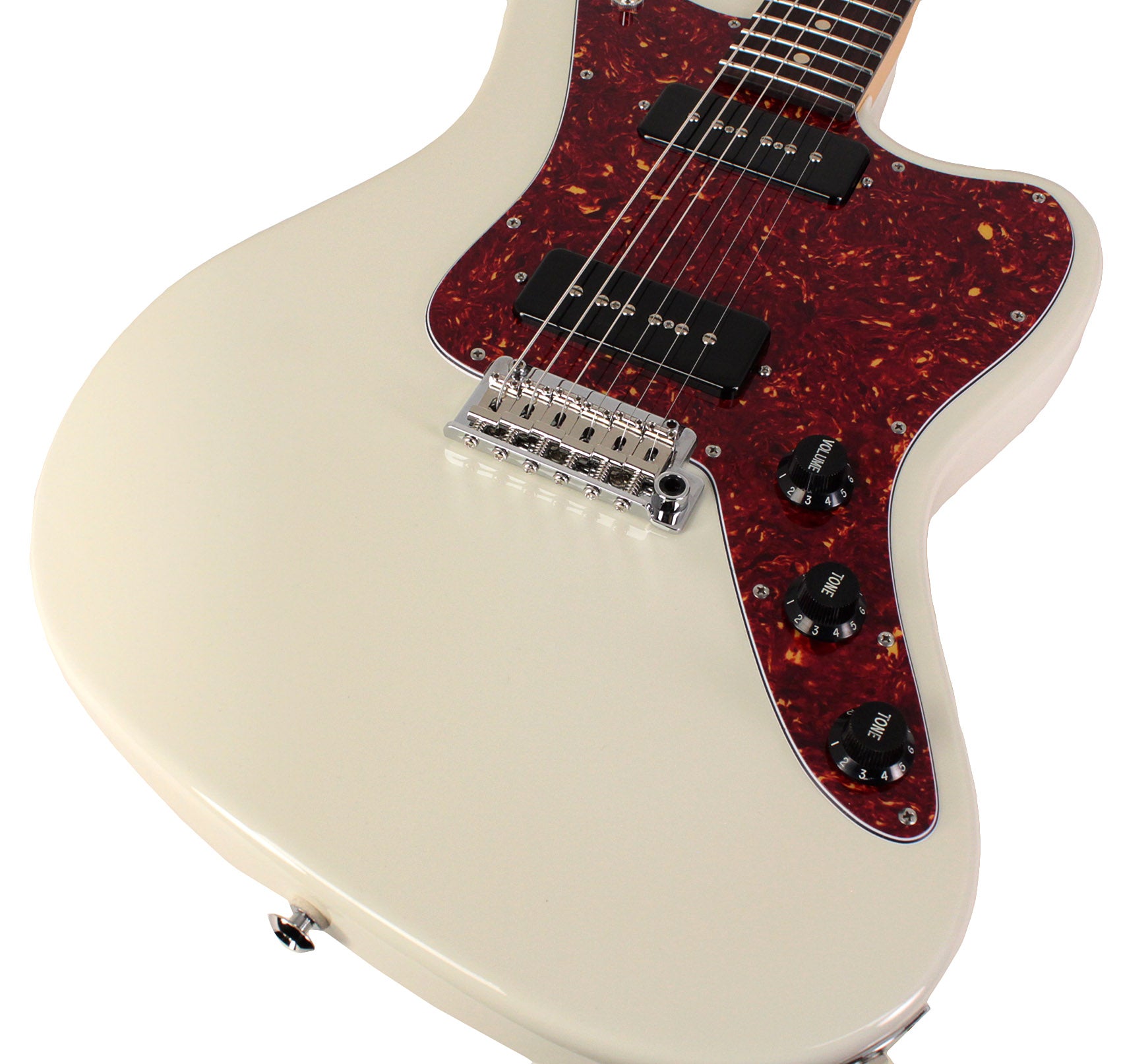 This Classic JM features two huge sounding but hum-free (using and active Silent Single Coil II System) S90 pickups with a low profile three way pickup selector.