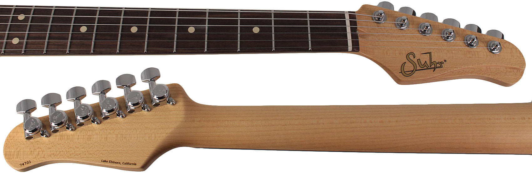 Like all Suhr guitars, the frets are leveled and hand dressed for superior playability. The improved headstock design enhances tuning stability, eliminating the need for a string tree.