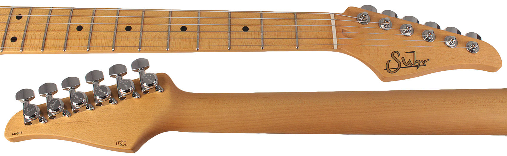 Each Suhr Classic S is built with a two-piece alder body. Alder is known for its rich low and mid-range tonal qualities as well as its lighter overall weight. Suhr takes great care in finishing the body with an ultra "Thin Skin" urethane finish, allowing for the wood to resonate freely while still providing plenty of protection to ensure the longevity of these guitars.